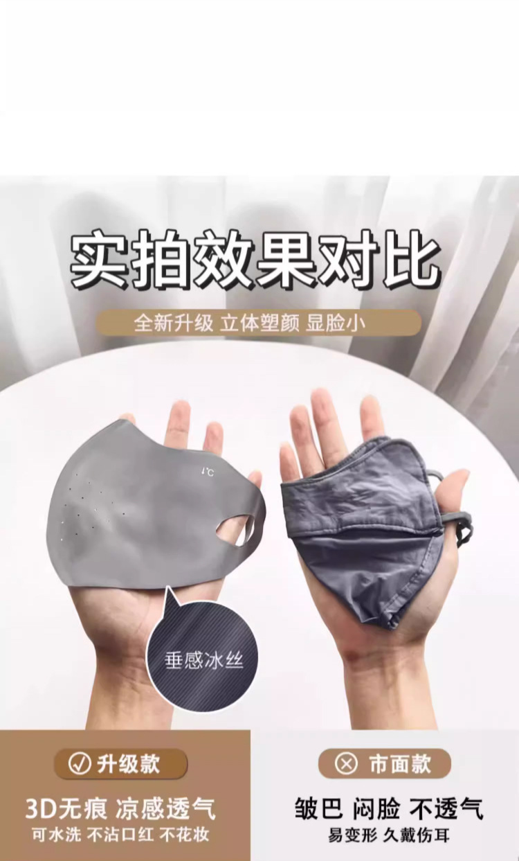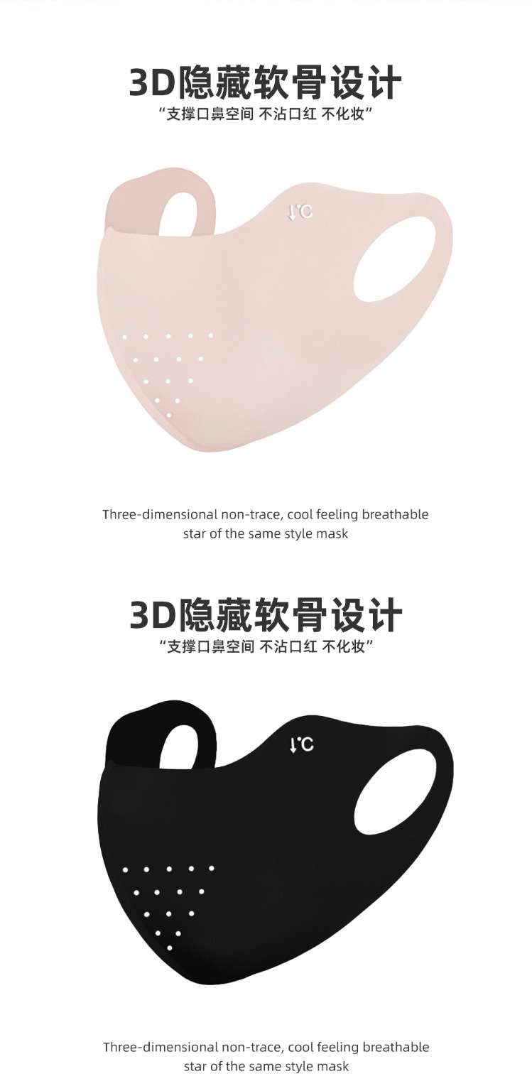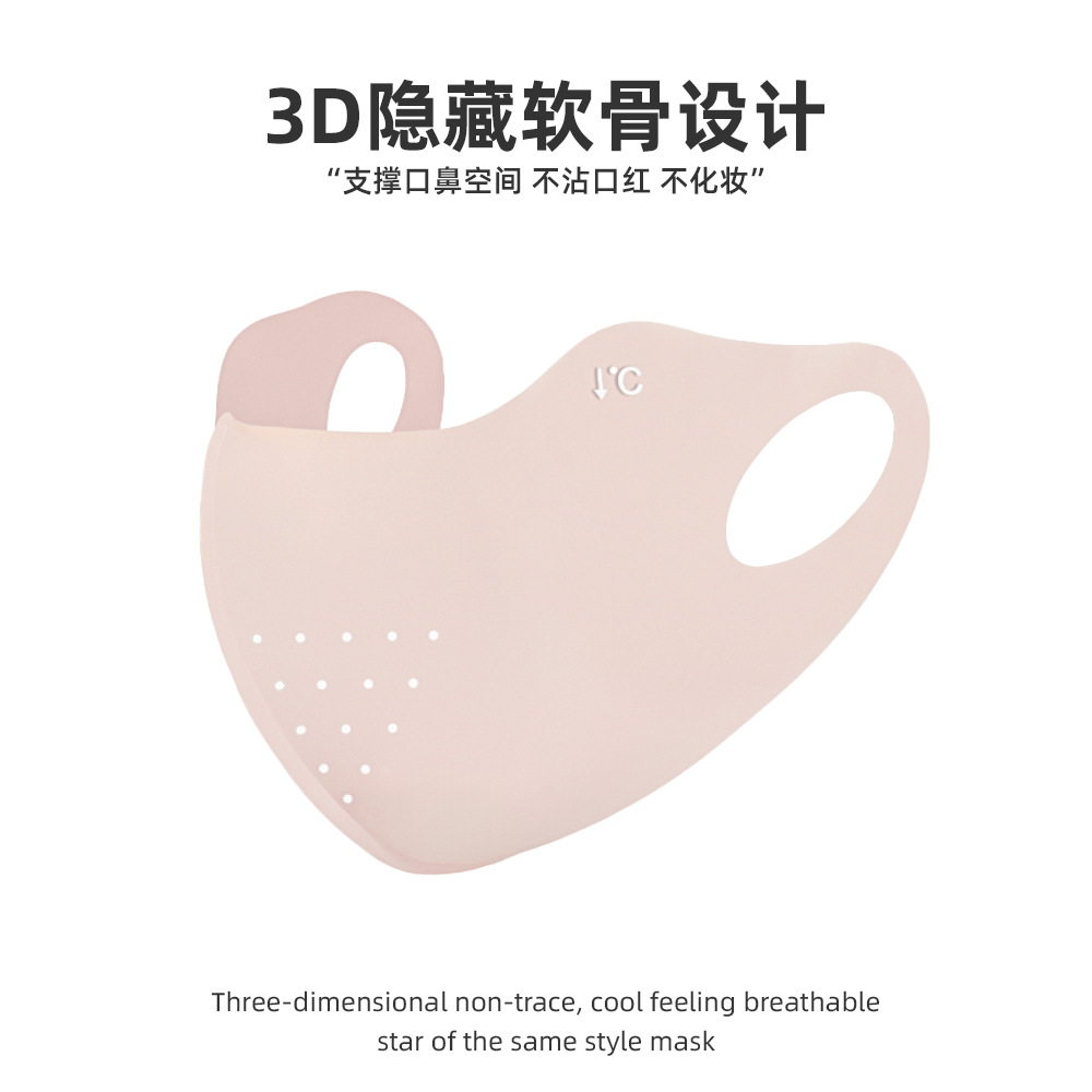 여름 클래식 패션 솔리드 컬러 아이스 실크 쿨 선 스크린 마스크 여성 캐주얼 올 매치 매일 통근 마스크