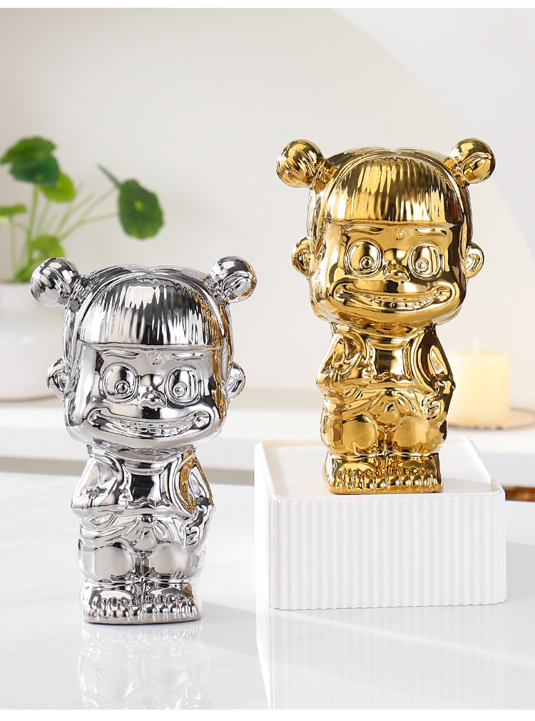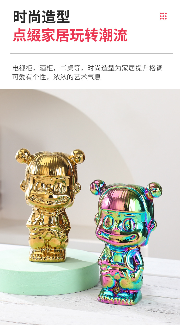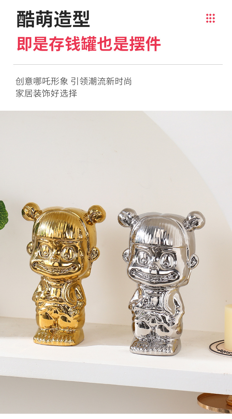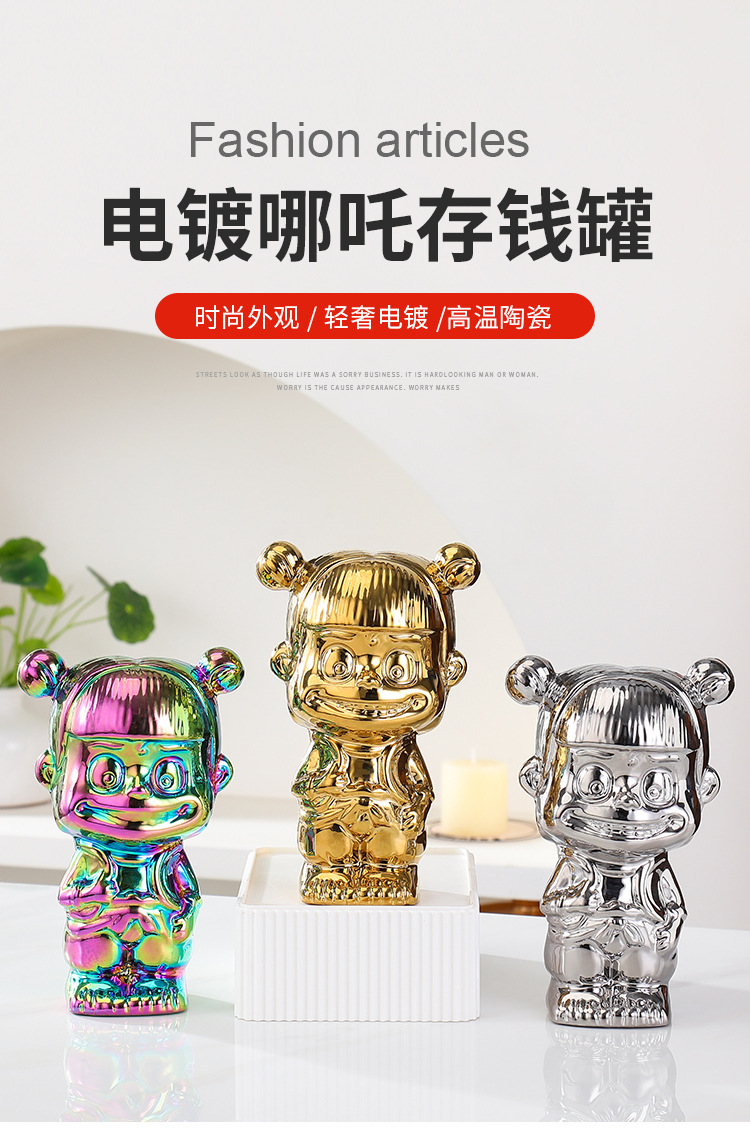 매직 아이 Nezha Naohai 전기 도금 세라믹 인형 새로운 인형 돼지 저금통 홈 거실 입구 장식