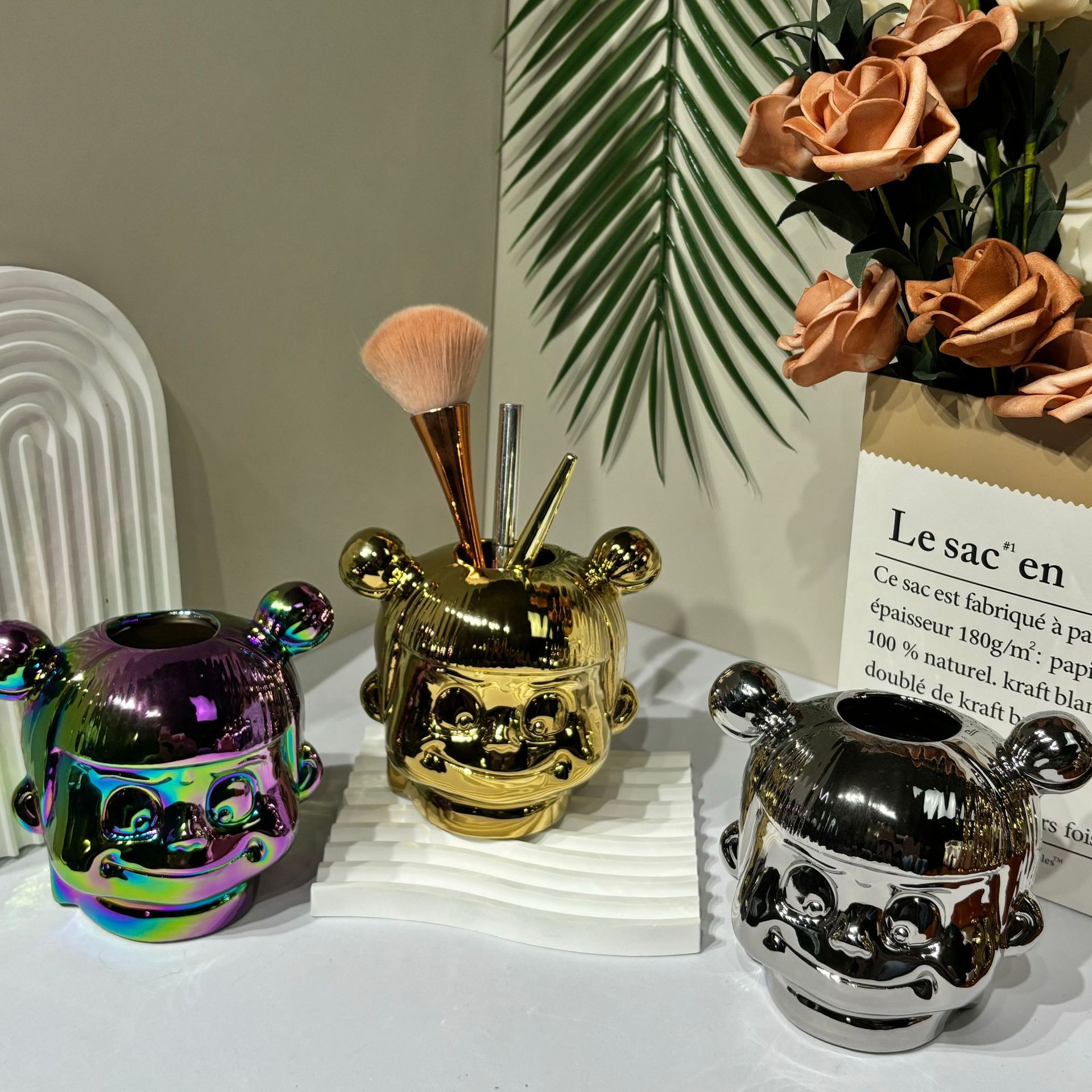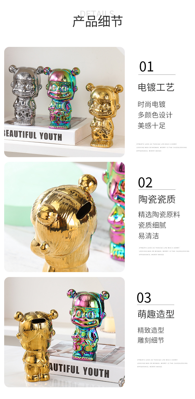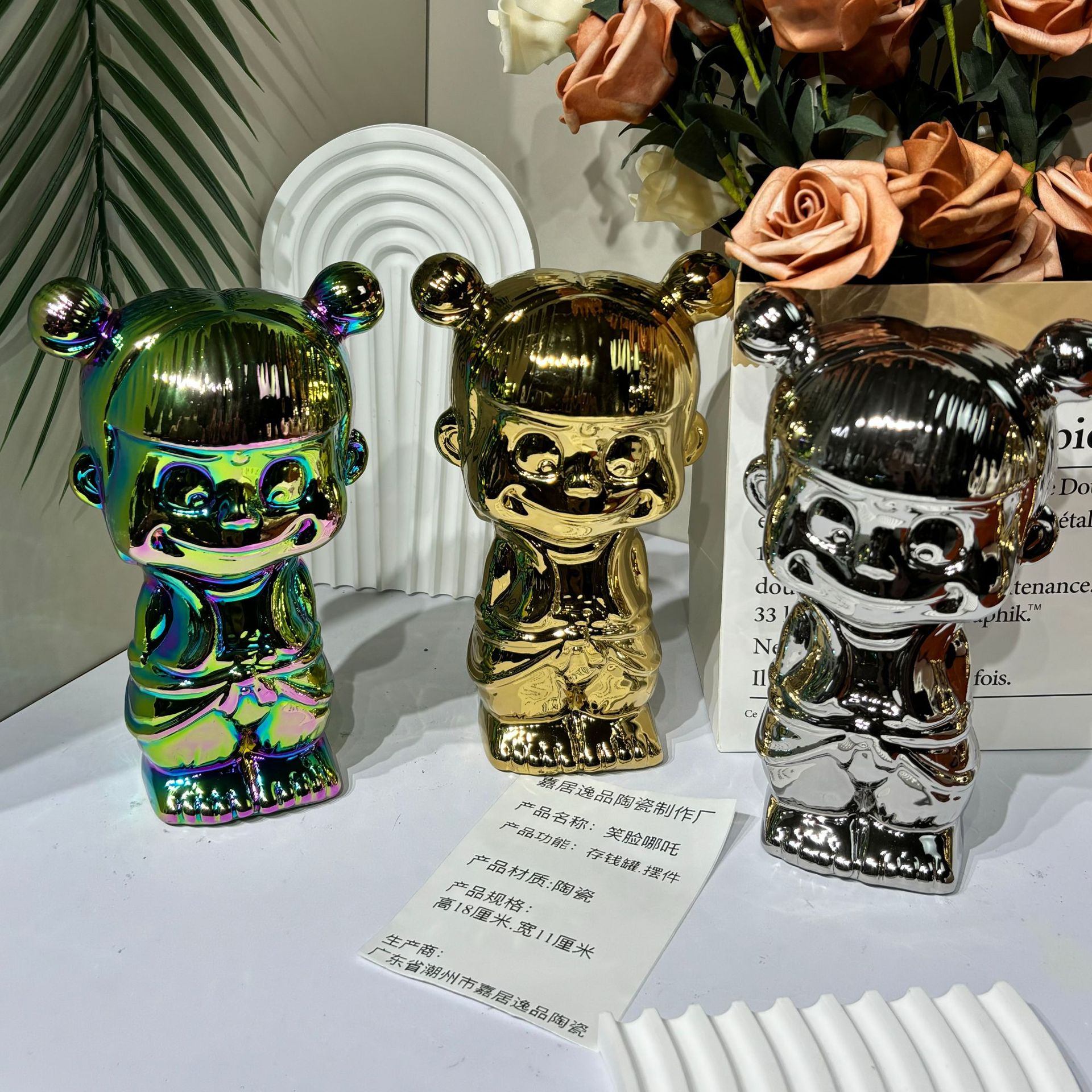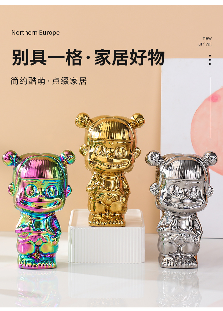 매직 아이 Nezha Naohai 전기 도금 세라믹 인형 새로운 인형 돼지 저금통 홈 거실 입구 장식