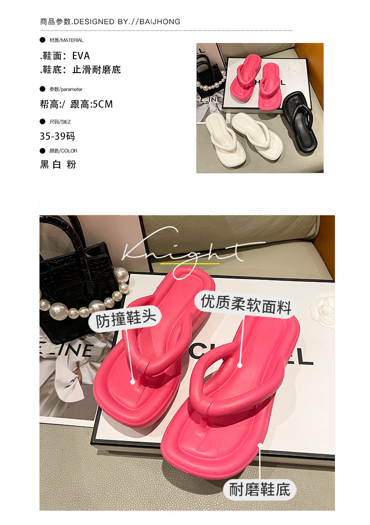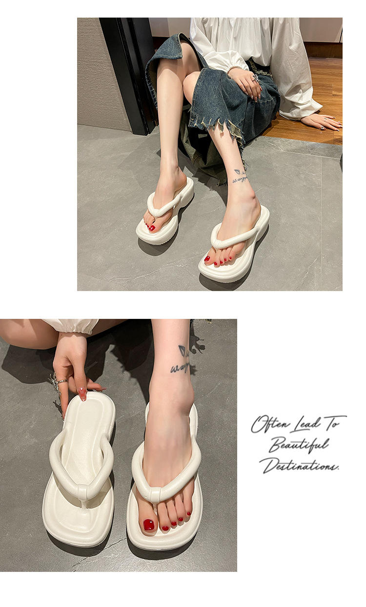 Zhao Lusi와 같은 스타일의 슬리퍼, 두꺼운 밑창, 똥 밟는 느낌을 높여주는, 미끄럼 방지, 가정 및 여행용 겸용 슬리퍼, 여성용 비치 샌들스토어 가기