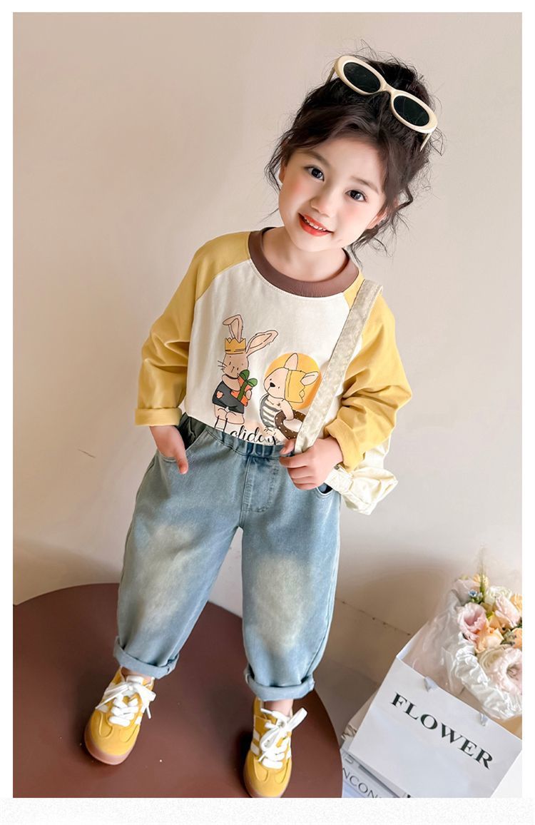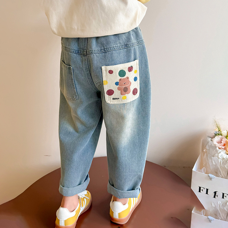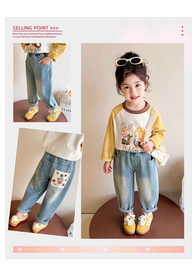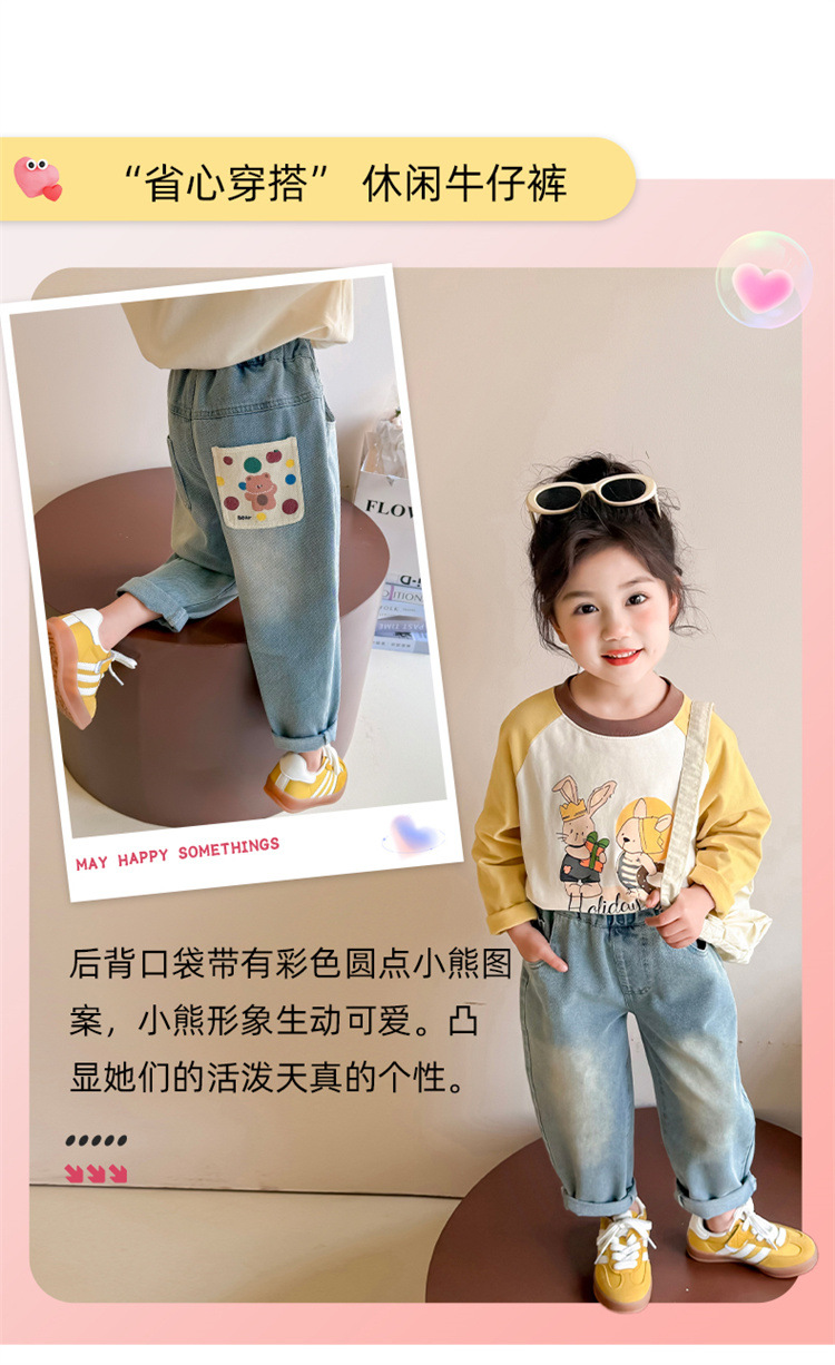 여자 청바지 2025 봄과 가을 새로운 어린이 패션 느슨한 캐주얼 바지 아기 소녀 다목적 겉옷 바지 유행스토어 가기