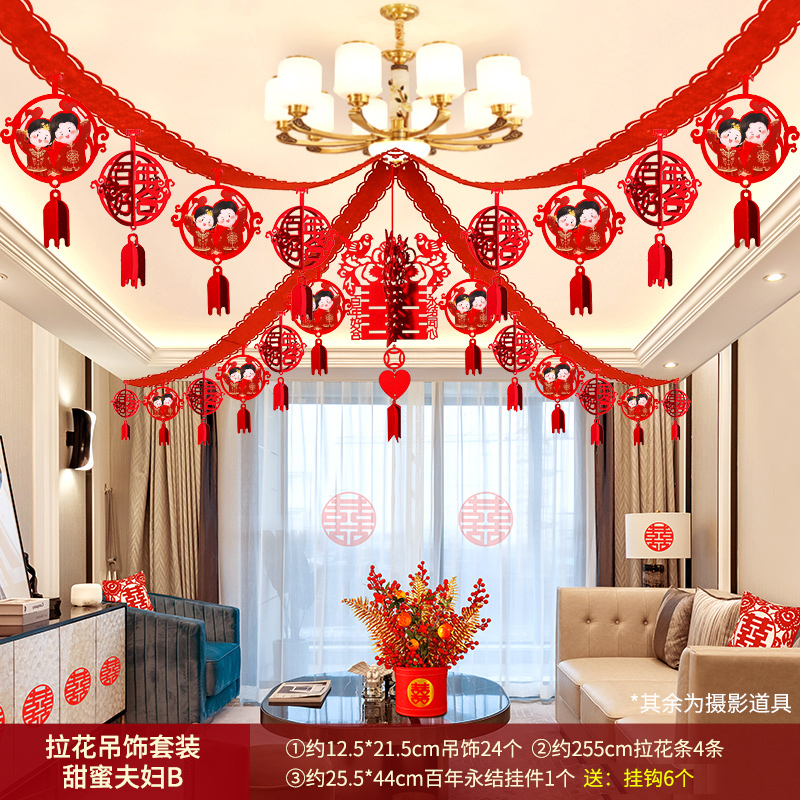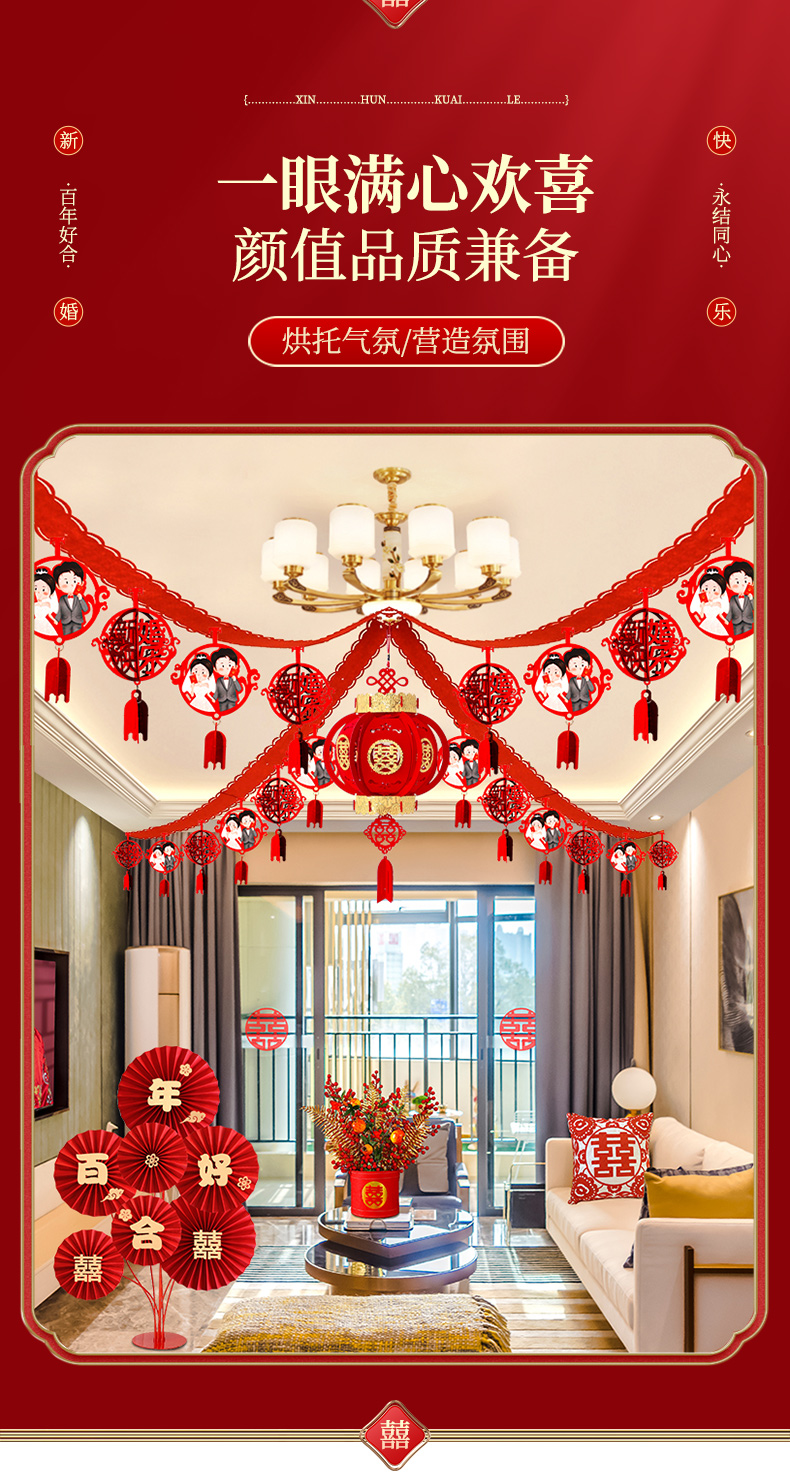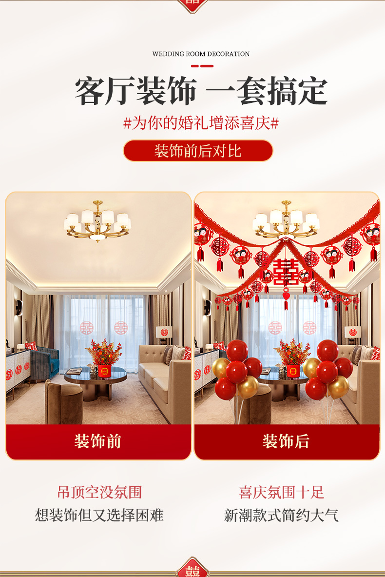신부의 웨딩룸 레이아웃 세트, 남성의 침실 지붕 꽃 장식, 웨딩 거실, 새 집 장식, 신부의 집 금 보호스토어 가기