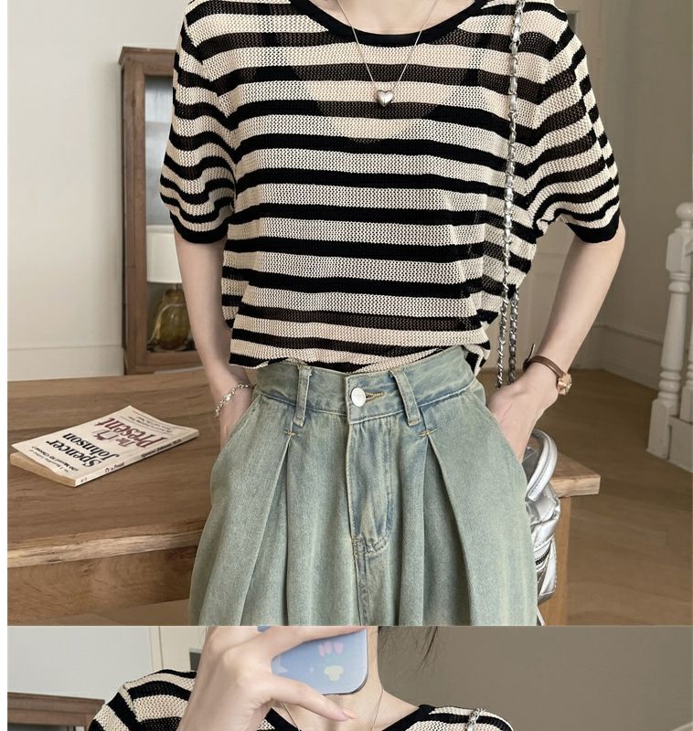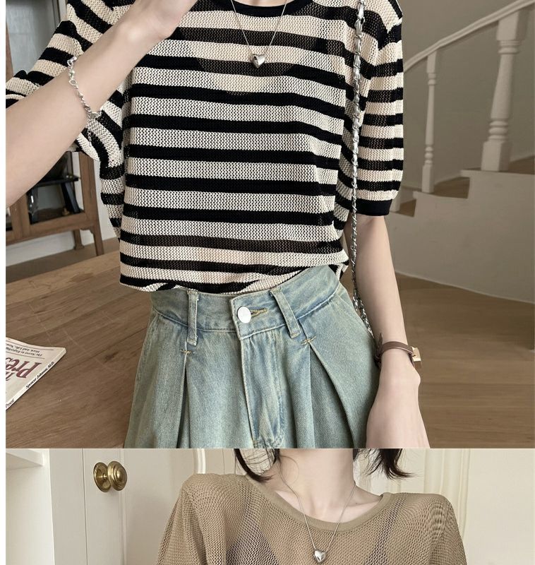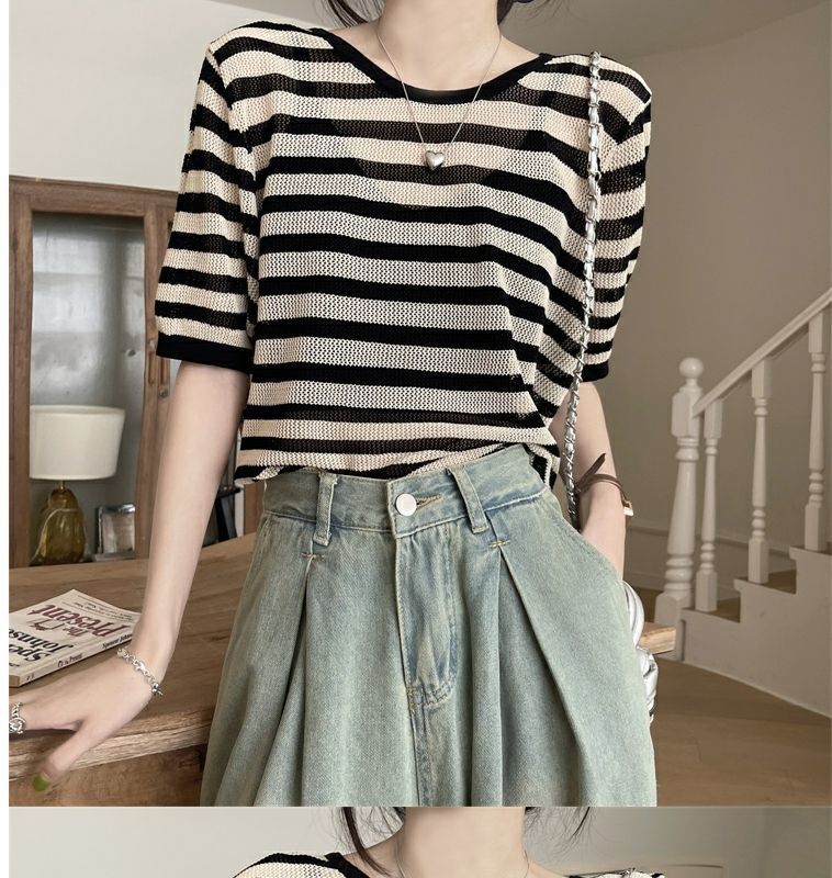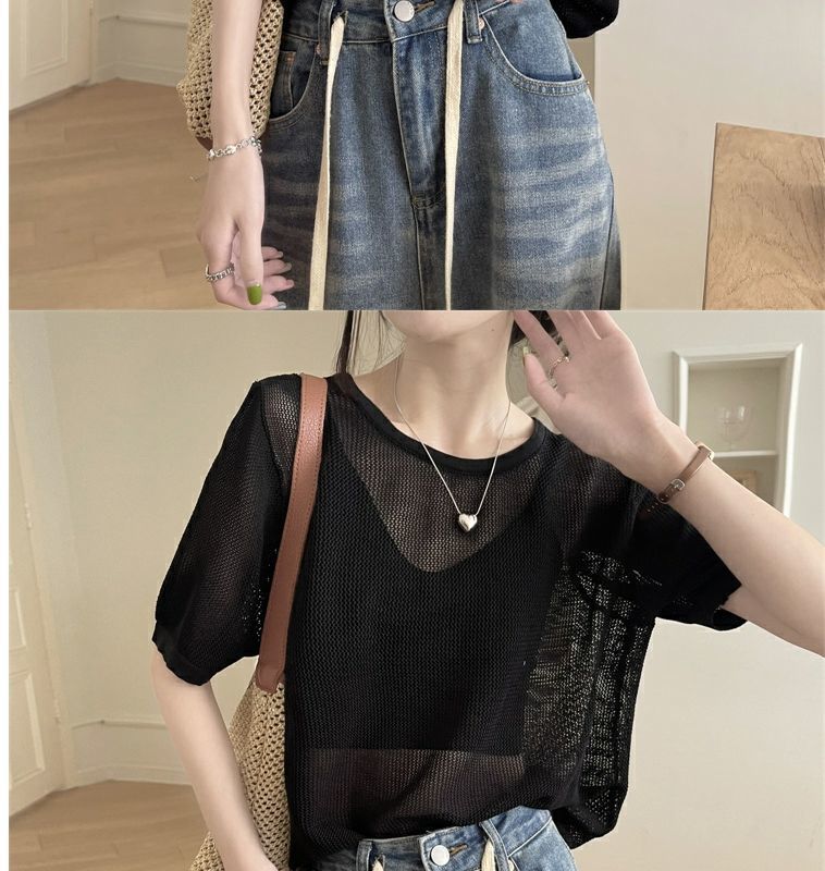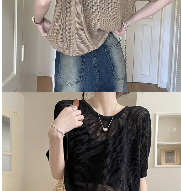 [4857 컬렉션] 심플 티셔츠 여성용 백 크로스 니트 탑 작은 셔츠 느슨한 슬림 라운드 넥 2025스토어 가기