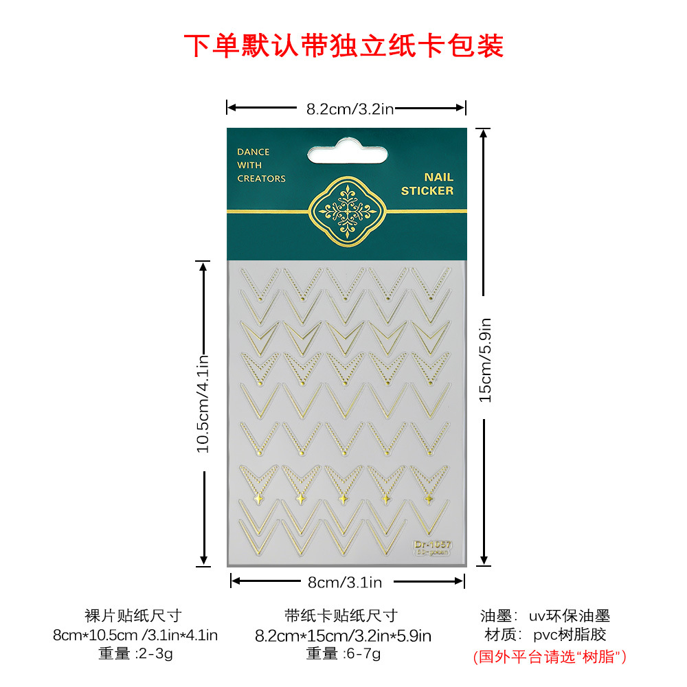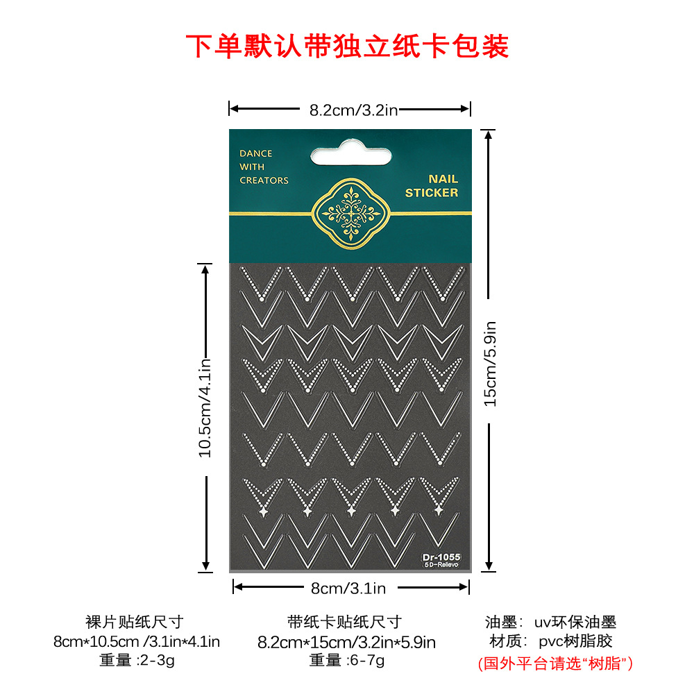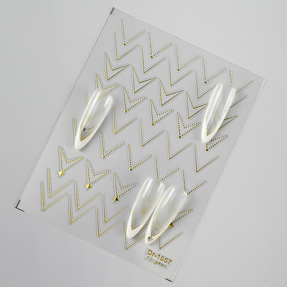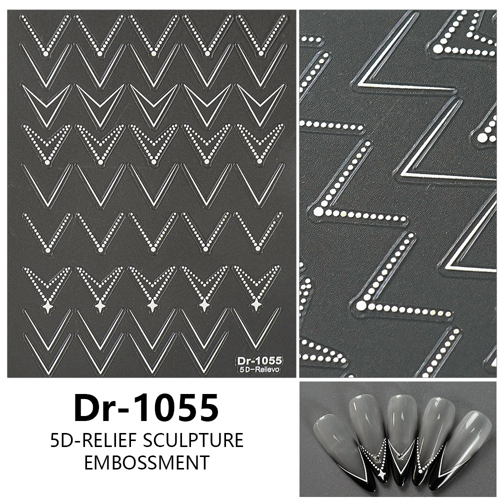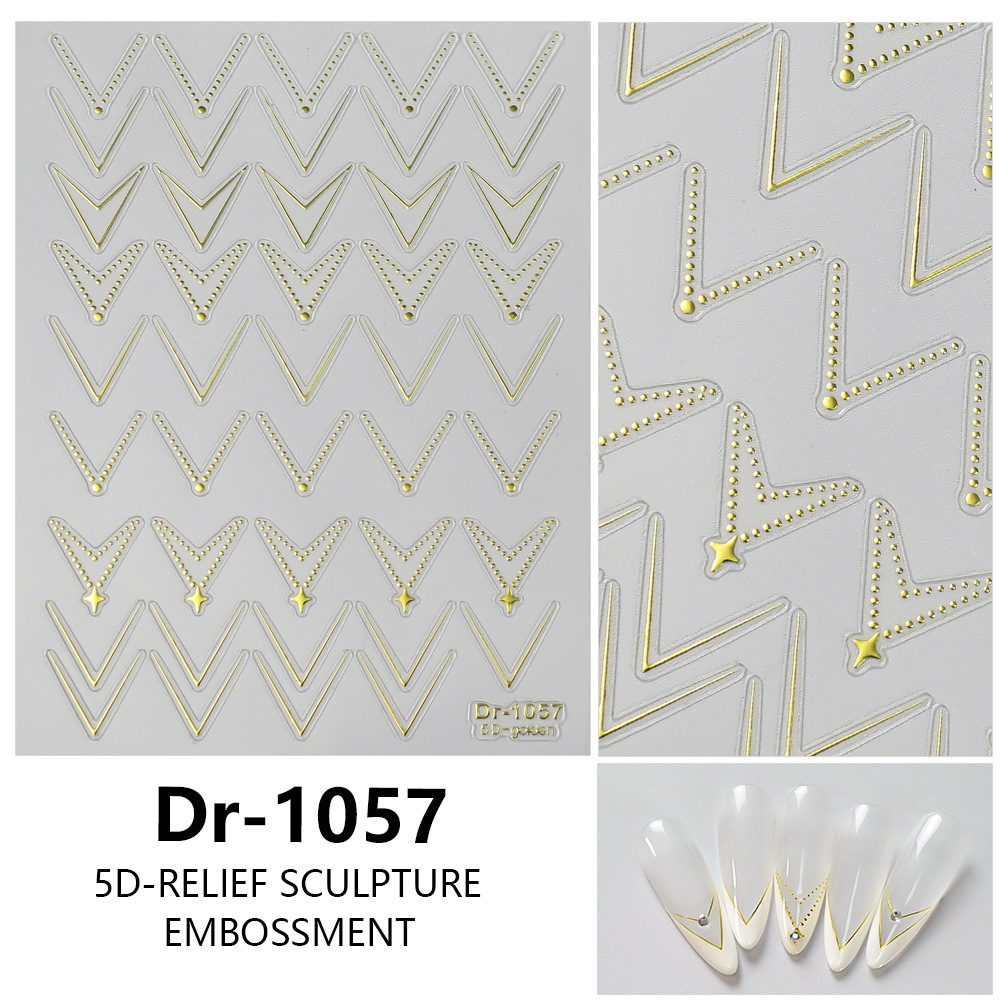 Redanco 새로운 5D 양각 기능 스타일 핫 골드 실버 프랑스 스타일 네일 아트 스티커 3D 네일 스티커 Dr-1056스토어 가기