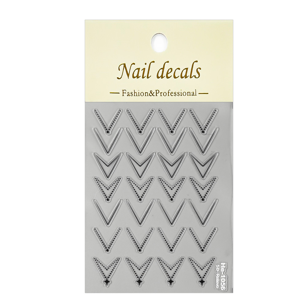 Redanco 새로운 5D 양각 기능 스타일 핫 골드 실버 프랑스 스타일 네일 아트 스티커 입체 네일 스티커 He-1058스토어 가기