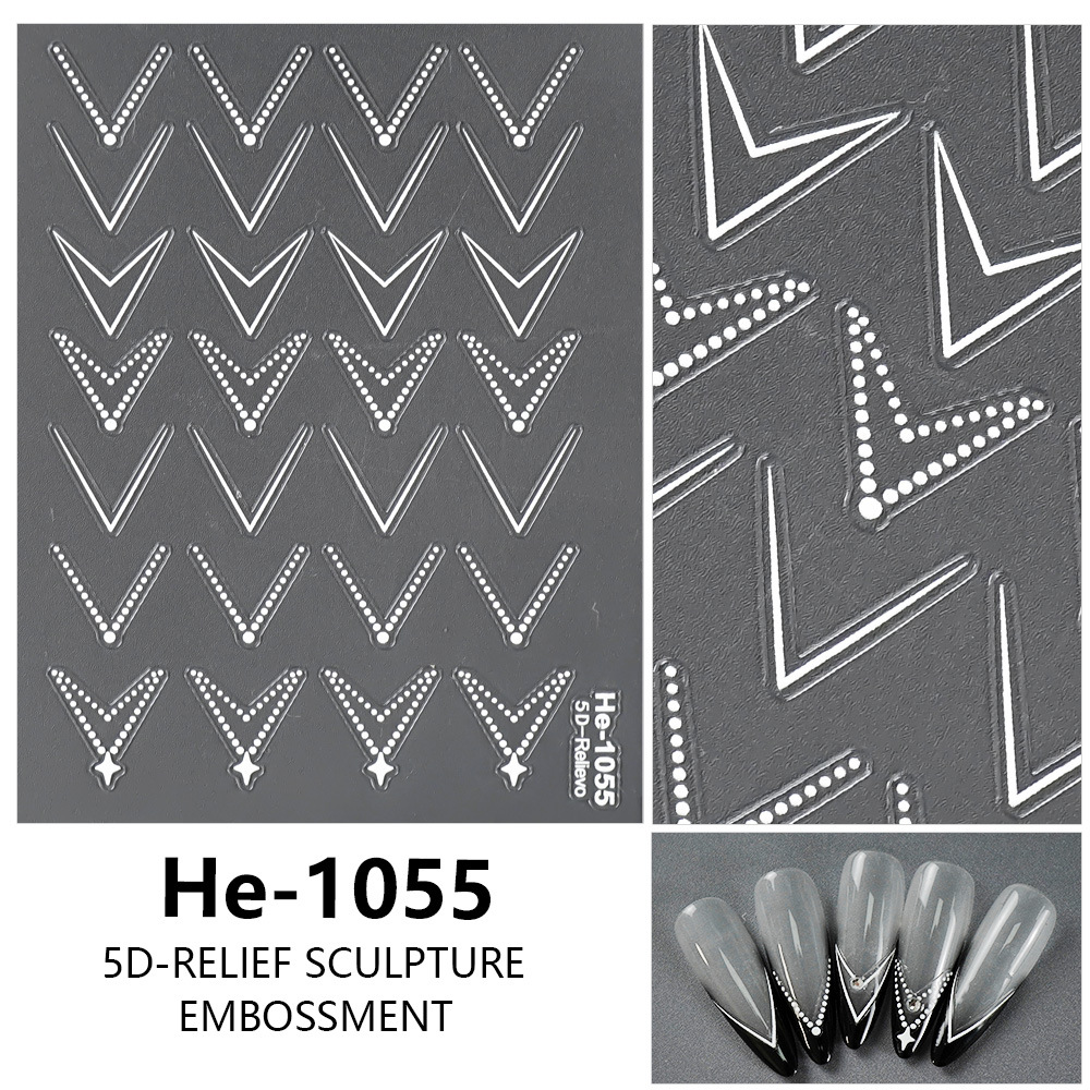Redanco 새로운 5D 양각 기능 스타일 핫 골드 실버 프랑스 스타일 네일 아트 스티커 입체 네일 스티커 He-1058