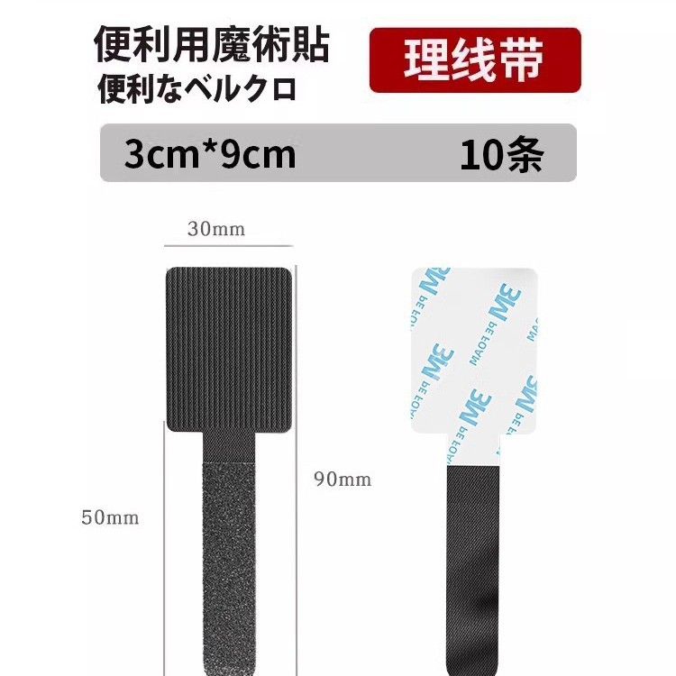• 검정색 표준 접착 벨크로 타이 [10개 팩]