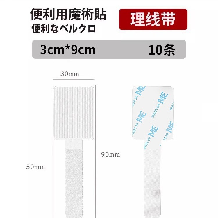 • 흰색 표준 접착 벨크로 타이 [30개 팩]
