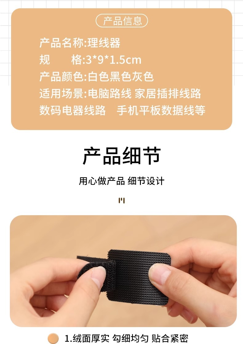 • 검정색 표준 접착 벨크로 타이 [30개 팩]