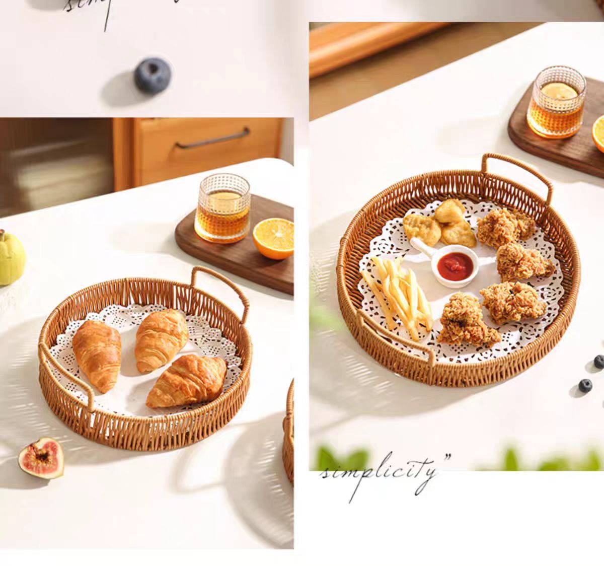 -모조 등나무 스낵 트레이, 스낵, 과일 바구니, 가정 거실 케이크 트레이, 빵 바구니, 등나무 말린 과일