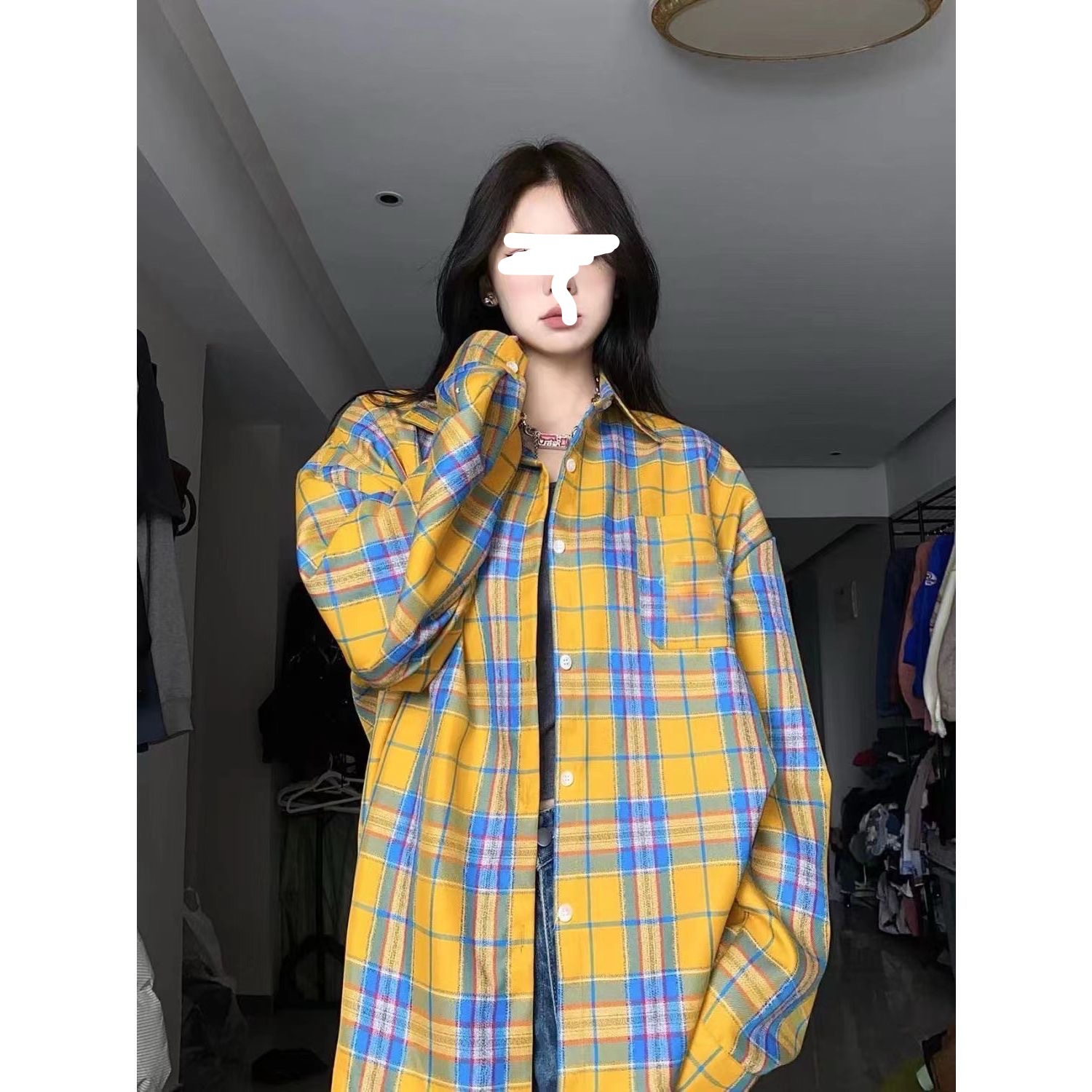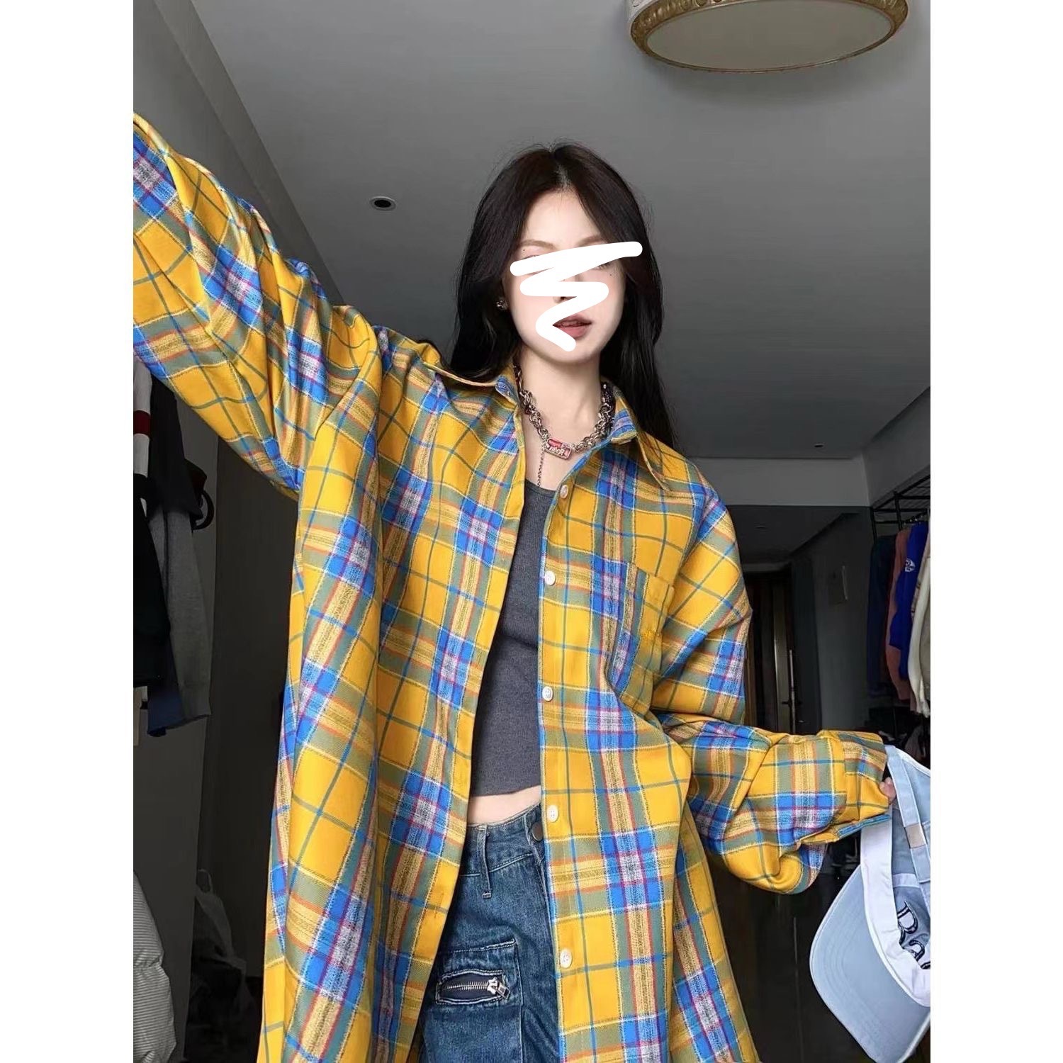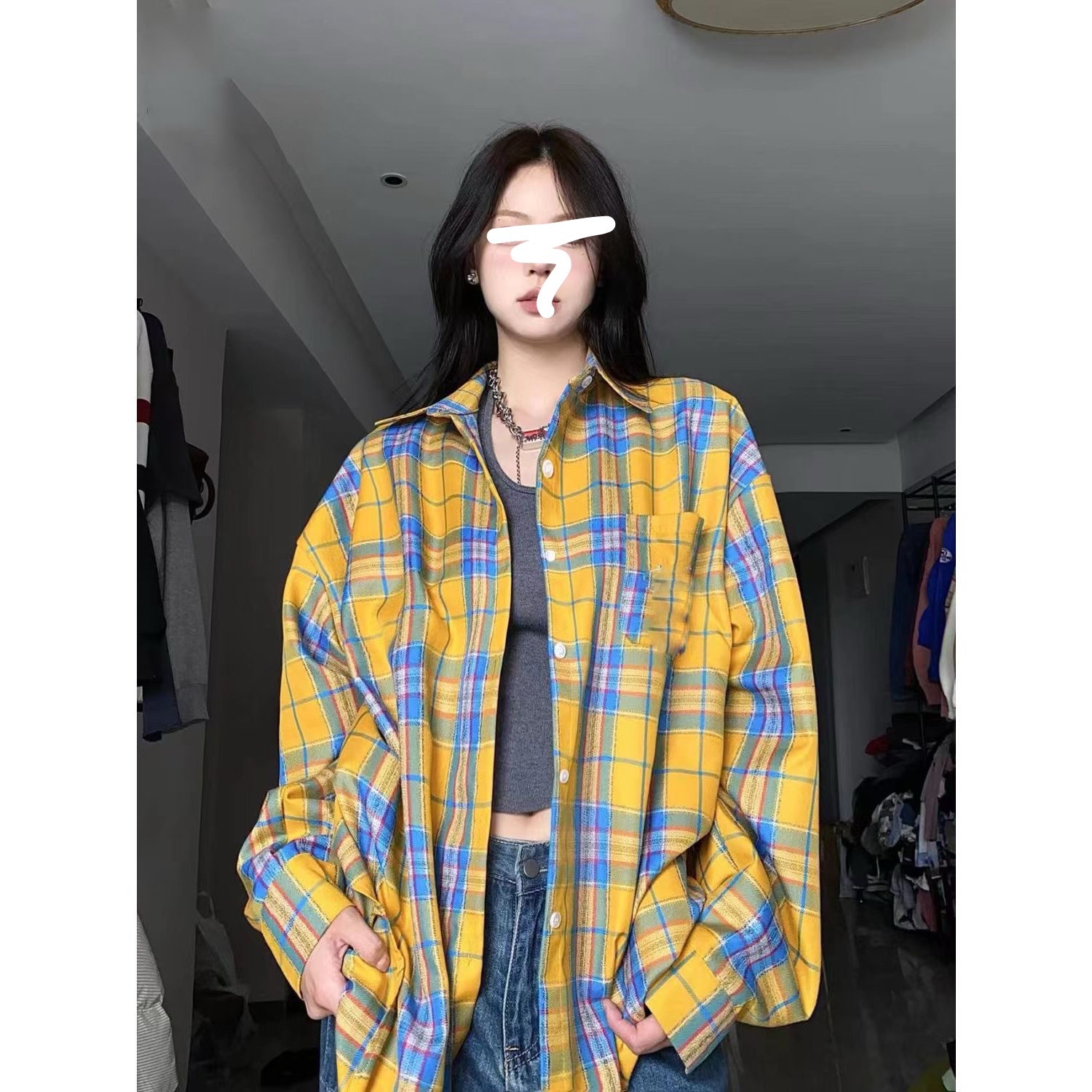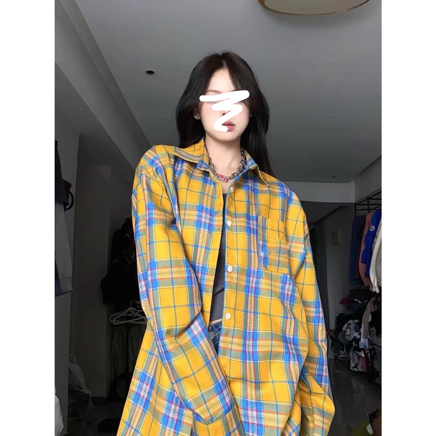 봄과 여름 노란 레트로 긴 소매 셔츠 여성의 2024 새로운 한국 스타일 달콤하고 매운 레트로 올 매치 캐주얼 커플 셔츠스토어 가기