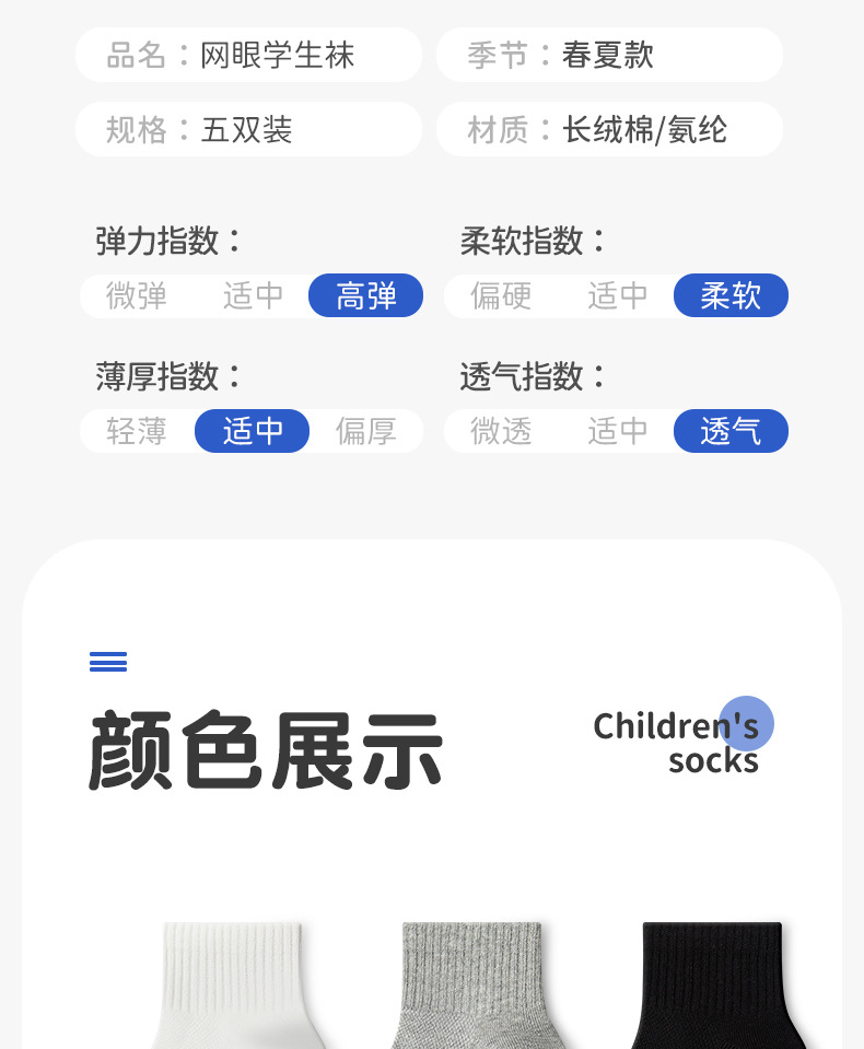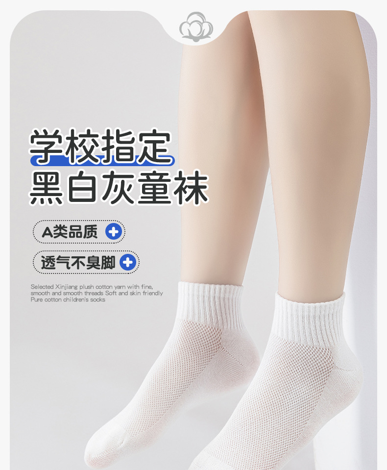 [뼈없는 안티 필링] 어린이 양말 여름 얇은 메쉬 큰 어린이 단색 학생 봄과 여름 면화 양말