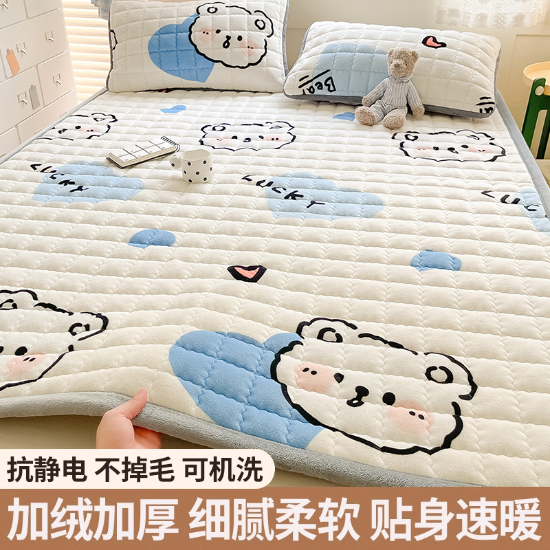 밀크 코랄 벨벳 매트리스 매트리스 이불 베딩 소프트 쿠션 기숙사 학생 싱글 담요 베딩 시트 겨울