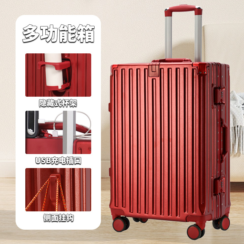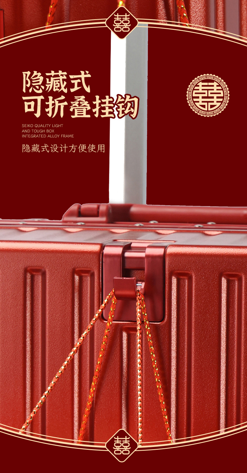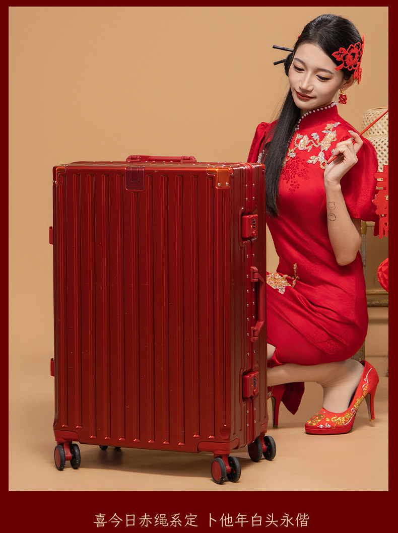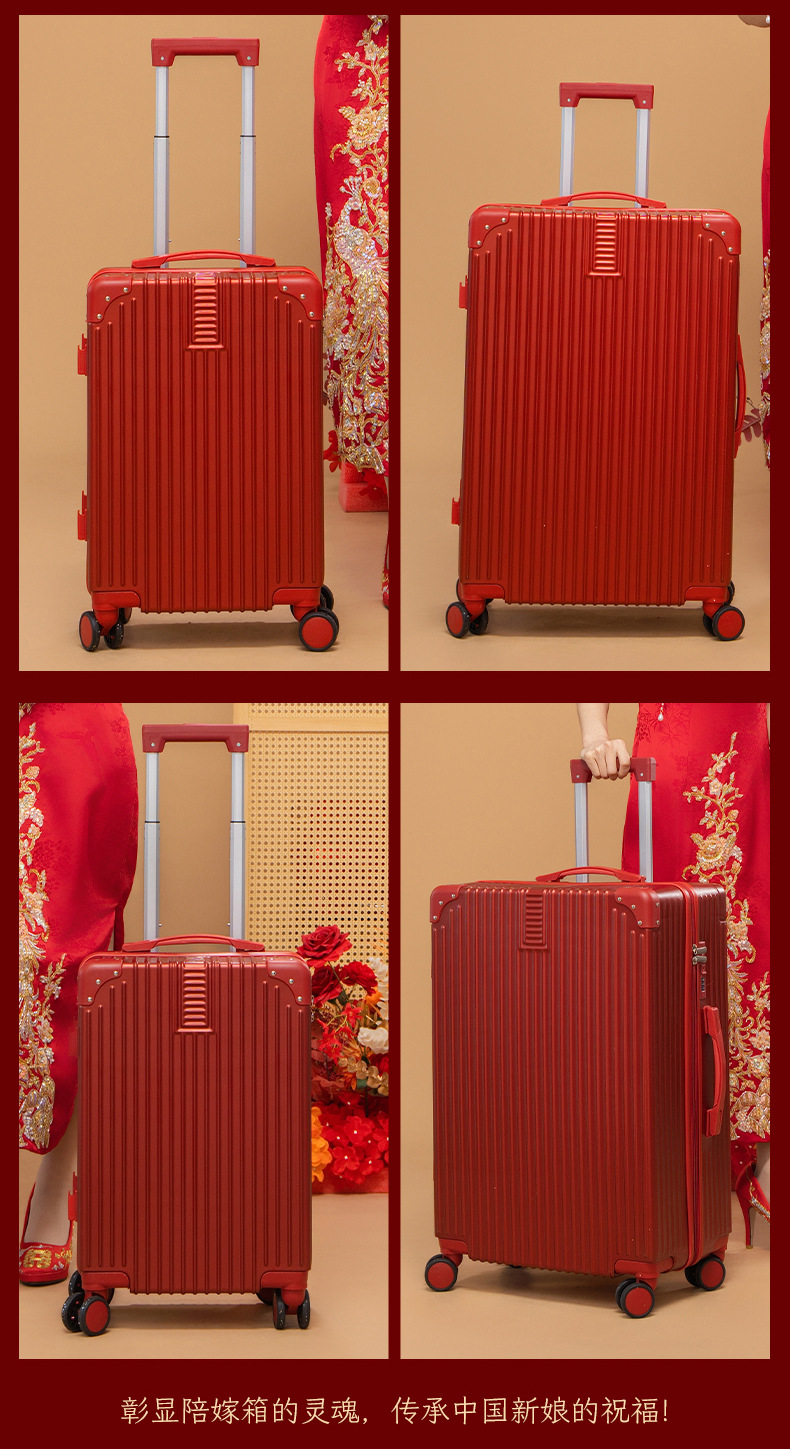 웨딩 필수 버건디 수하물 케이스 20 인치 동반 케이스 유니버설 휠 트롤리 케이스 웨딩 가방 Dowry 케이스 여성용스토어 가기