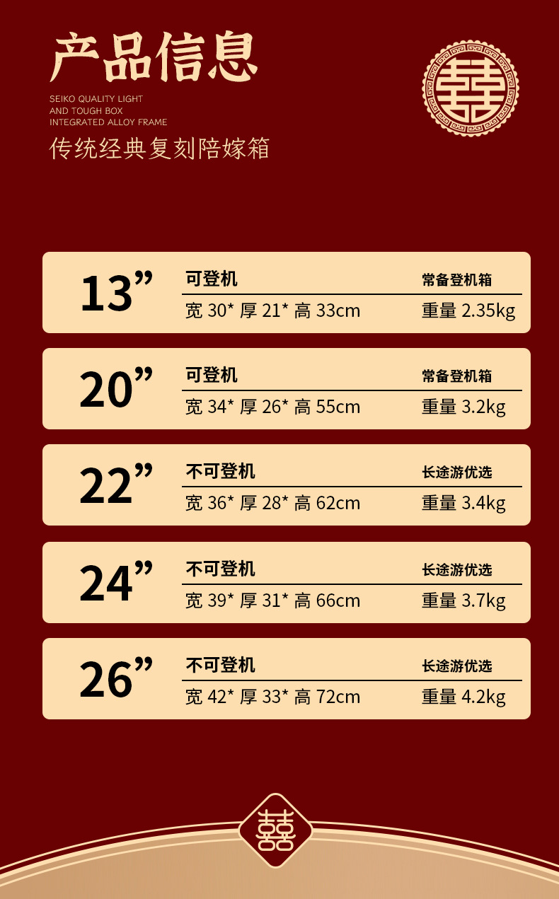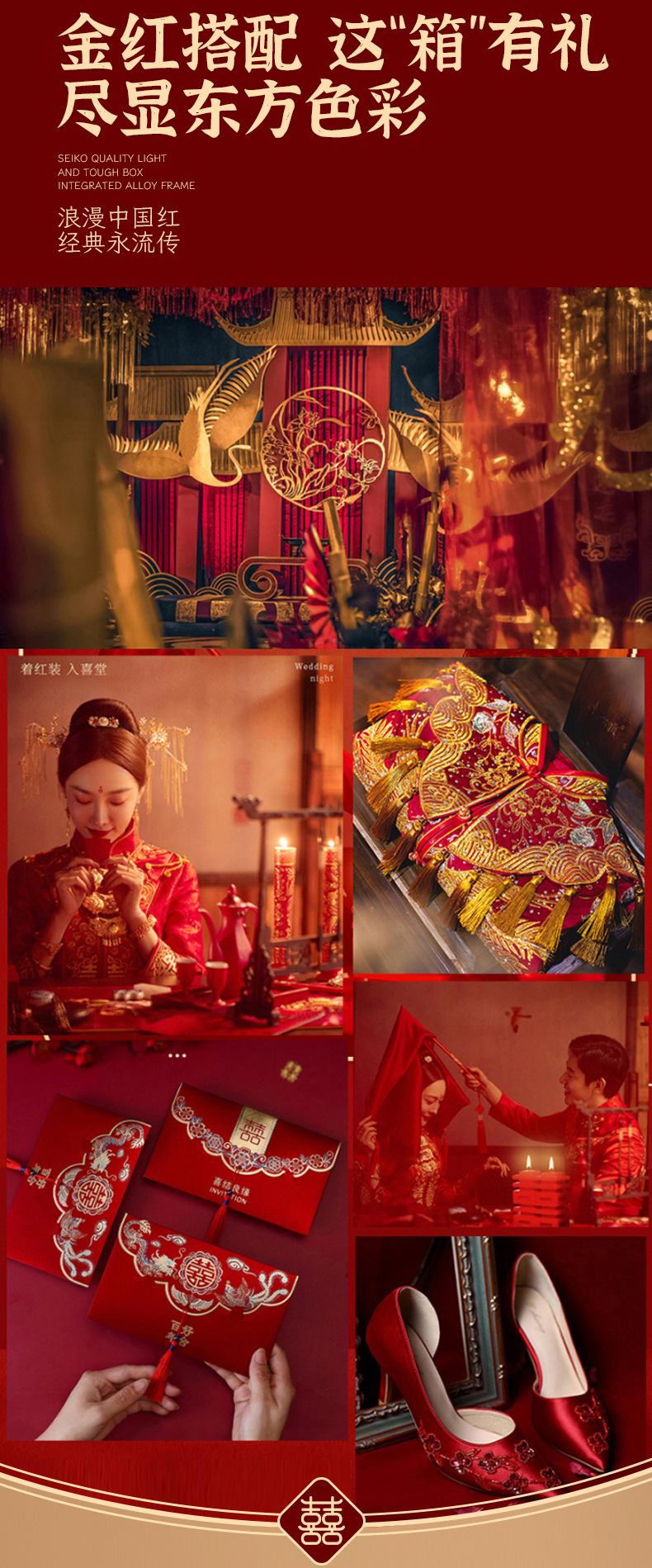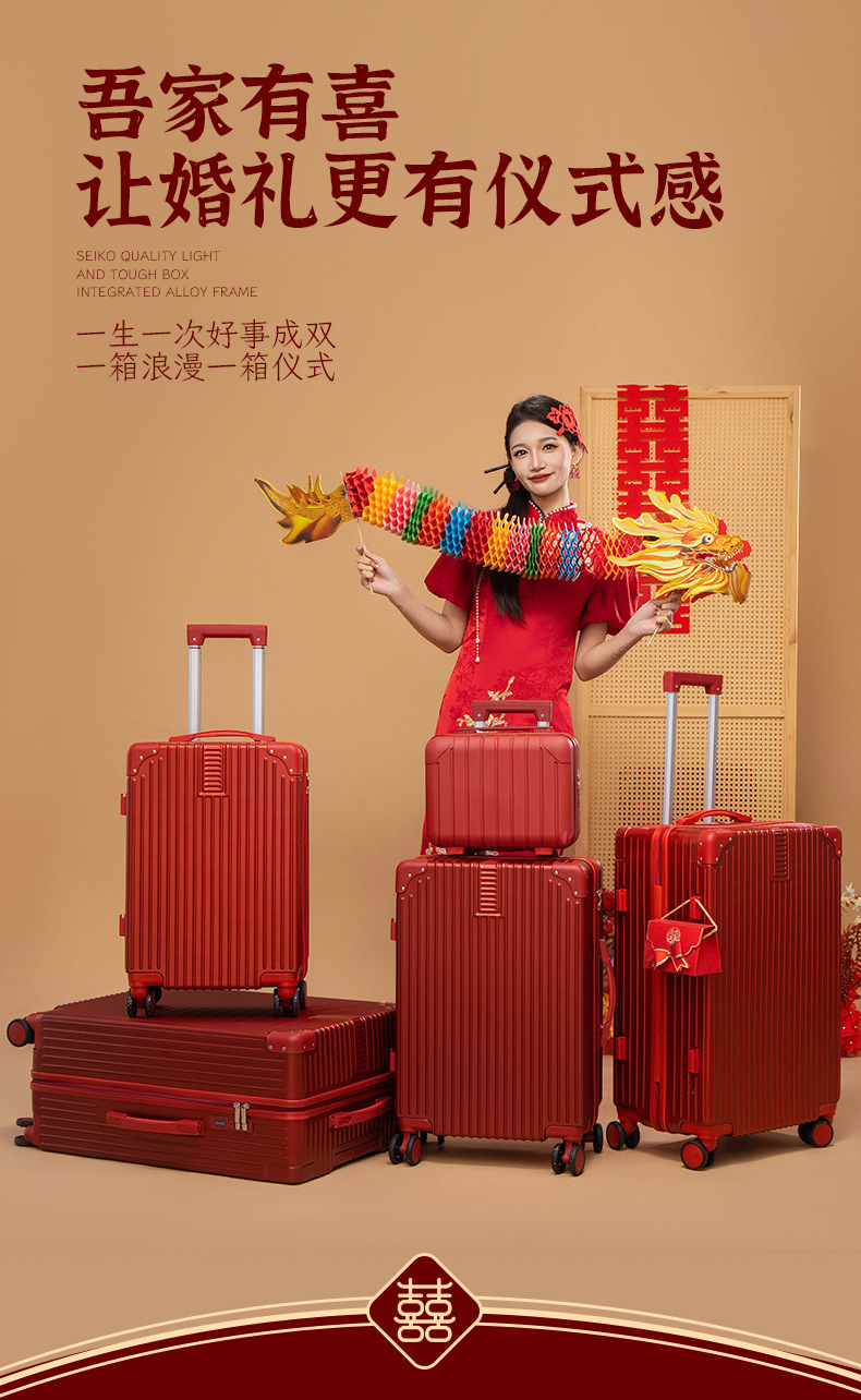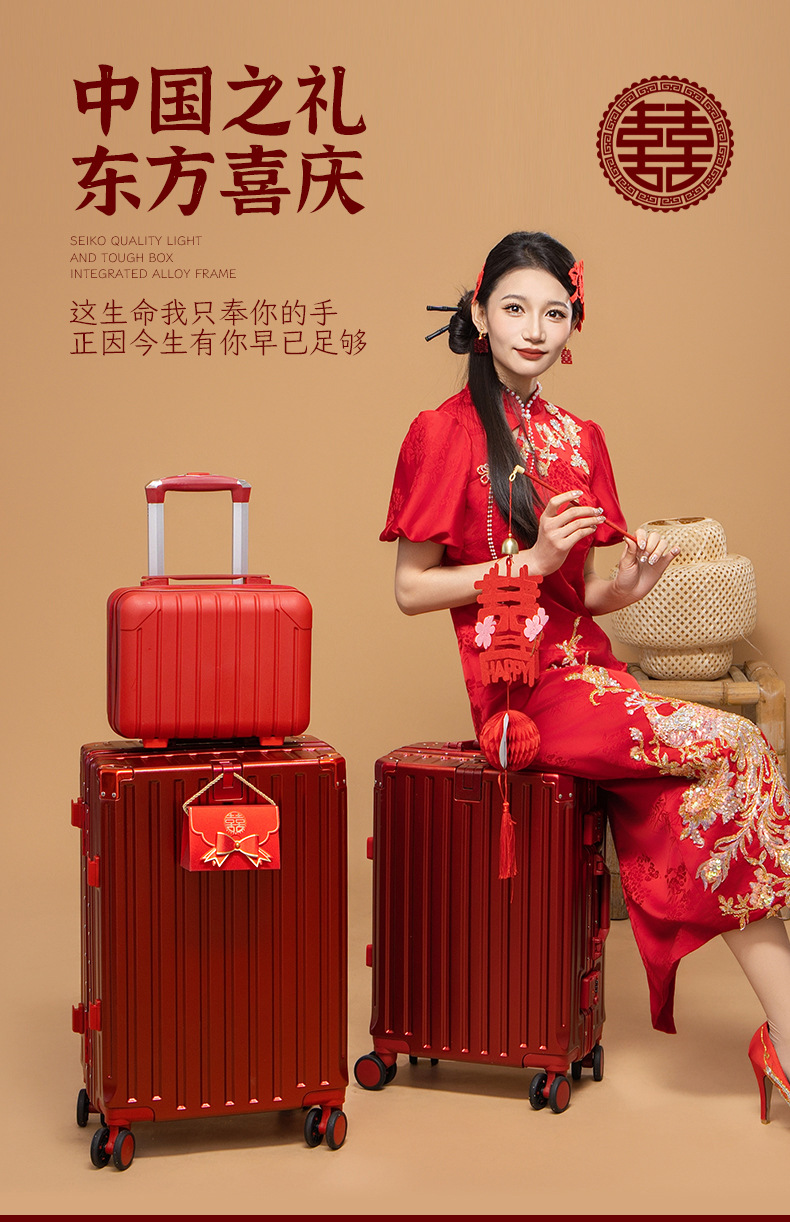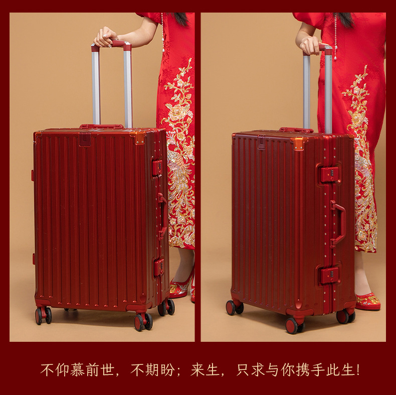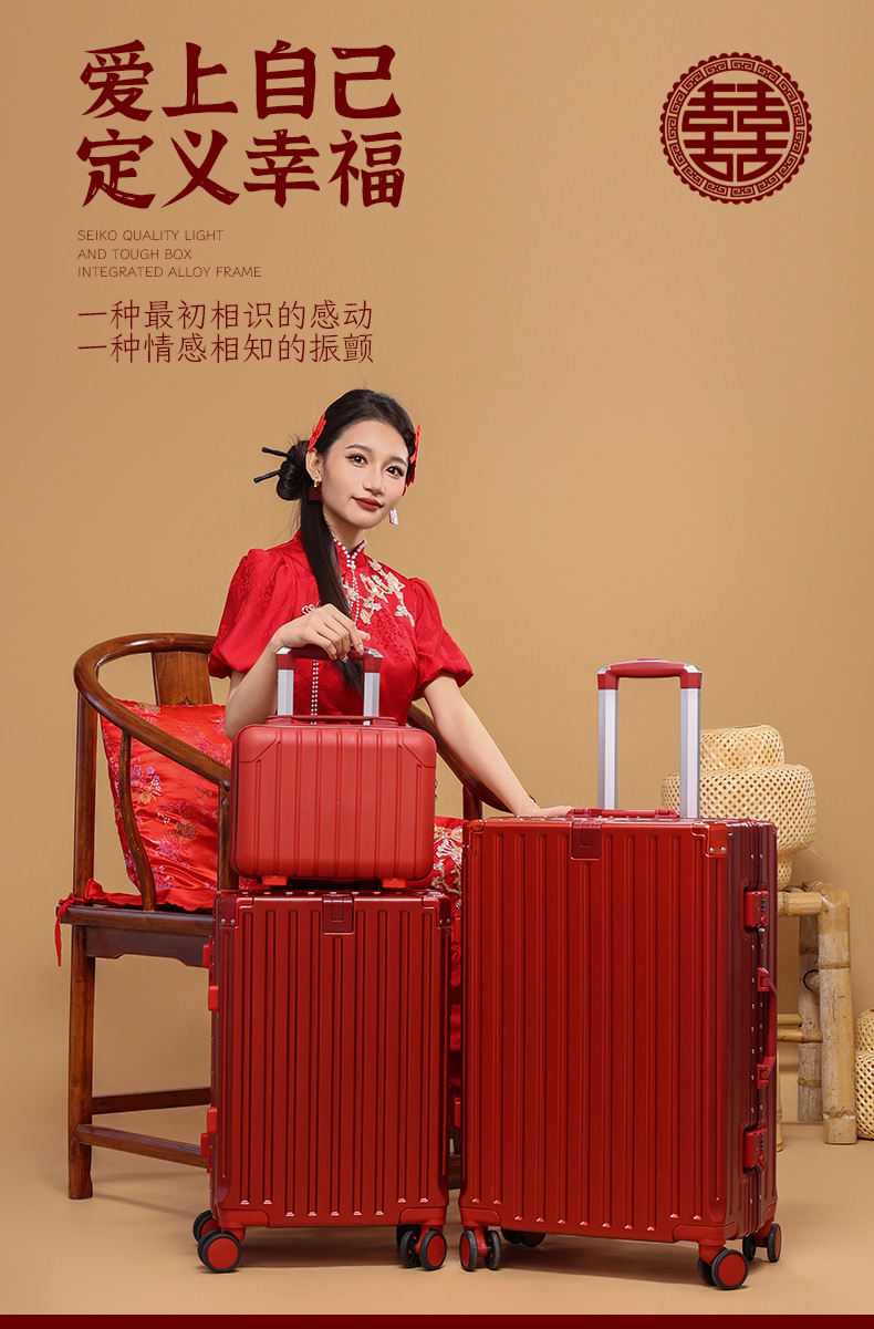 웨딩 필수 버건디 수하물 케이스 20 인치 동반 케이스 유니버설 휠 트롤리 케이스 웨딩 가방 Dowry 케이스 여성용