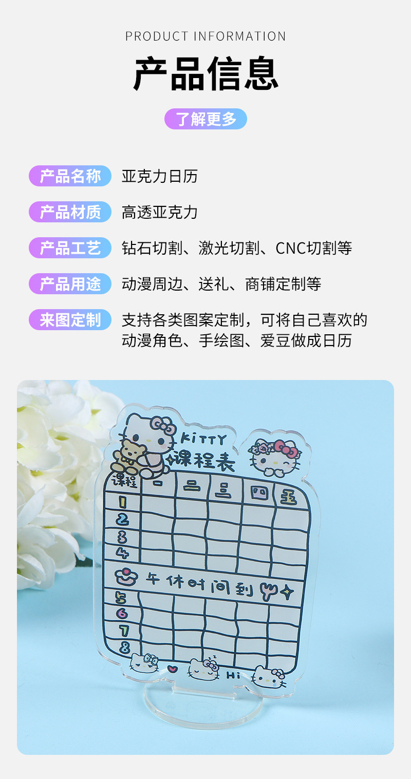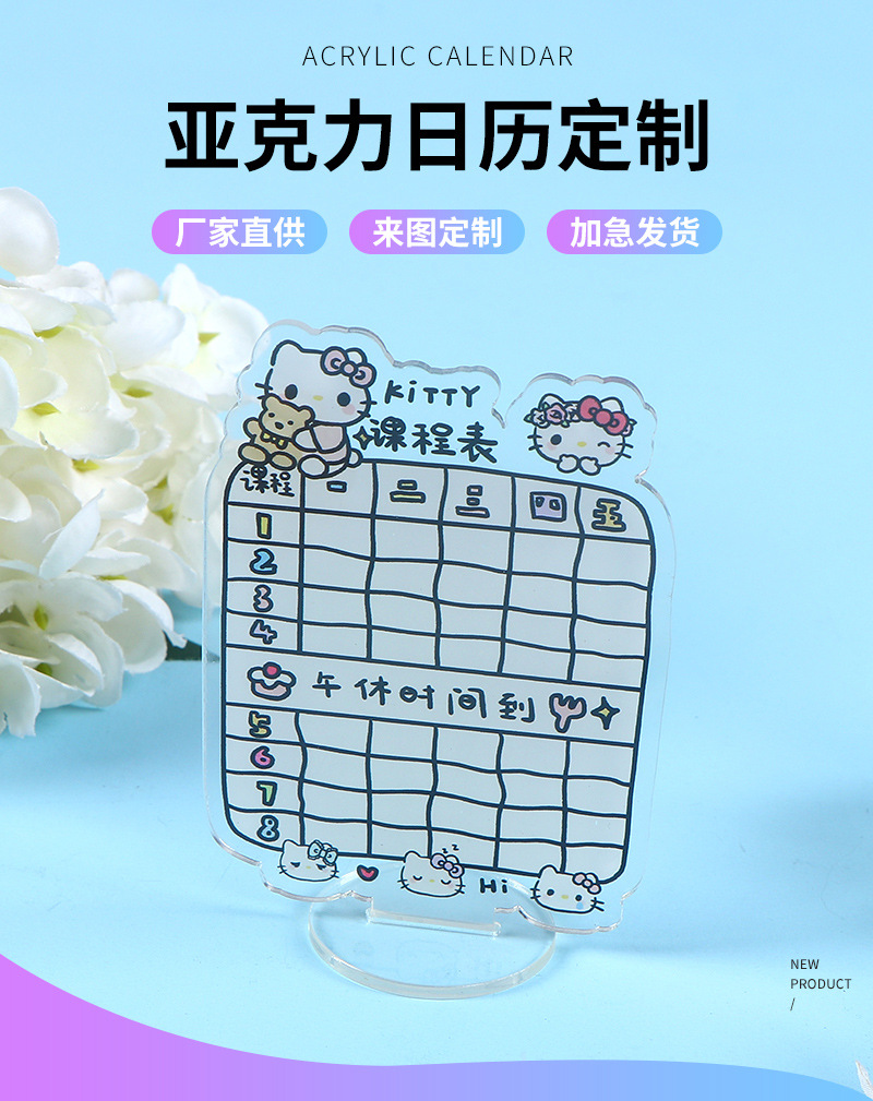 아크릴 달력 학생 투명 만화 창조적 인 커리큘럼 사무실 장식 미니 데스크탑 장식품