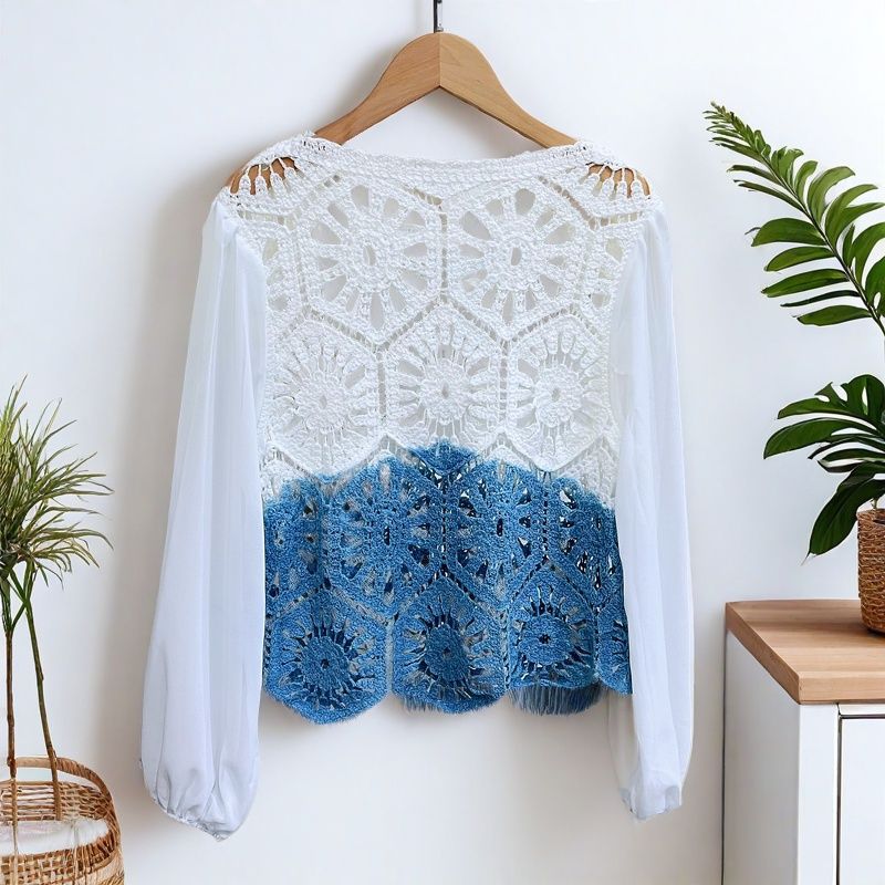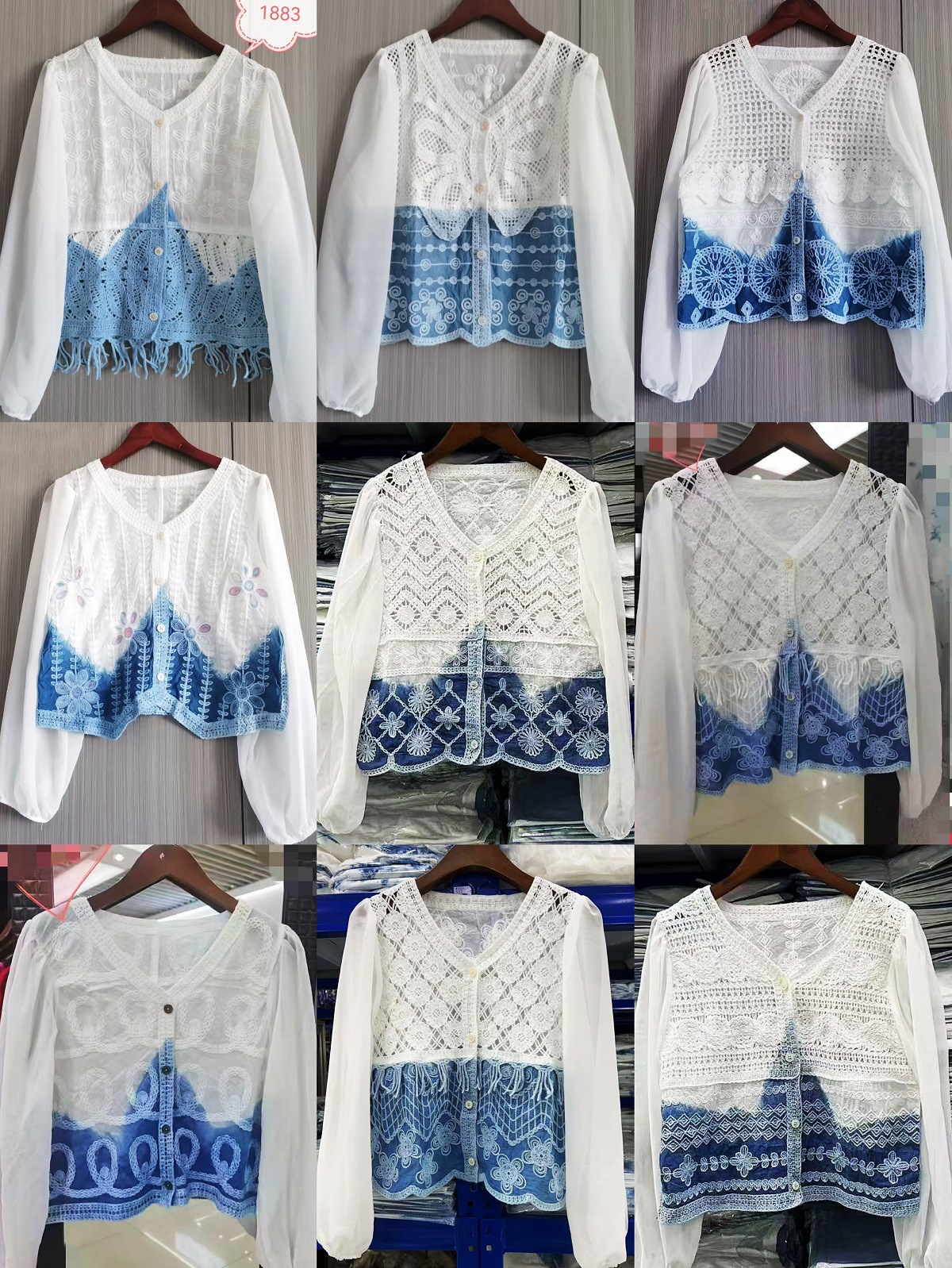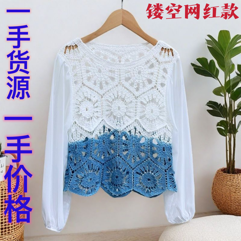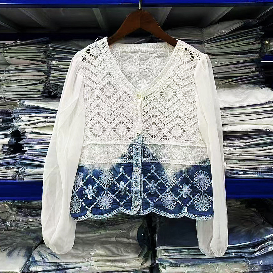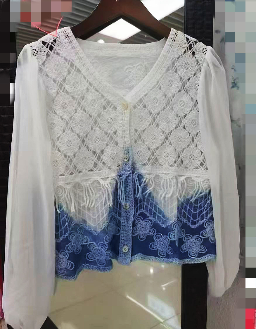 다리 염색 레이스 민족풍 숏 쉬폰 셔츠 여성용 여름 여행 캐주얼 브이넥 긴팔 다용도 자켓스토어 가기