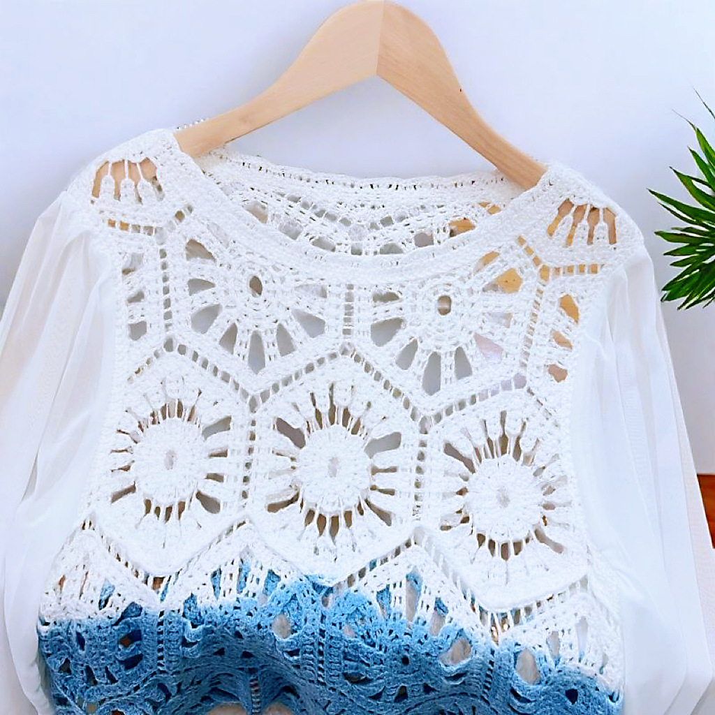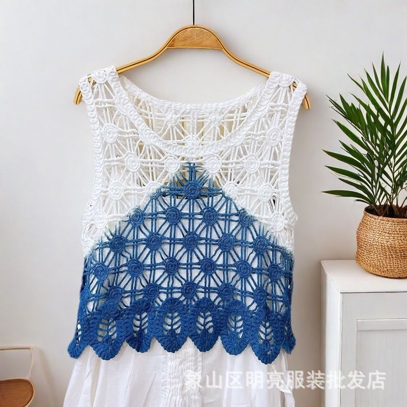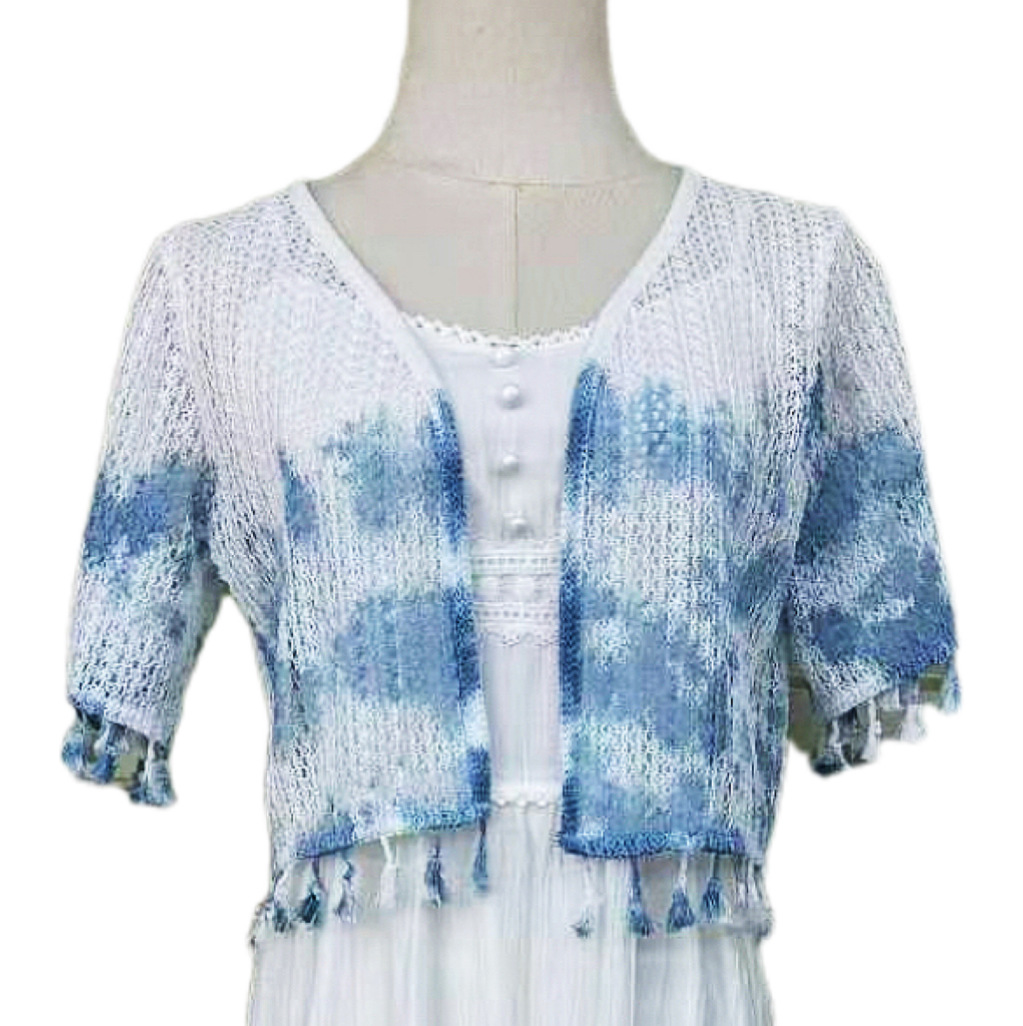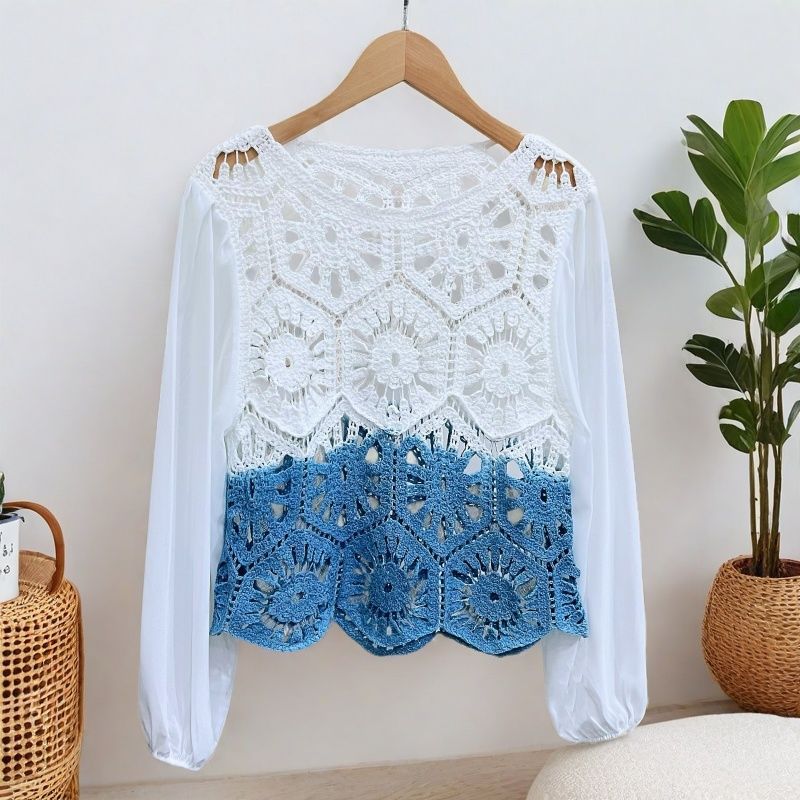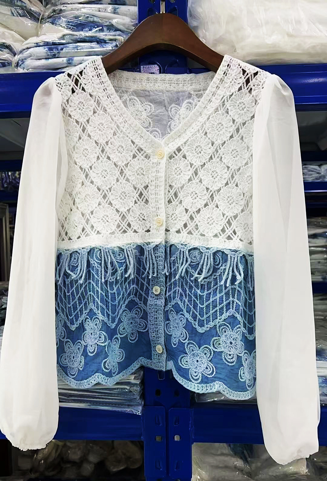 다리 염색 레이스 민족풍 숏 쉬폰 셔츠 여성용 여름 여행 캐주얼 브이넥 긴팔 다용도 자켓스토어 가기