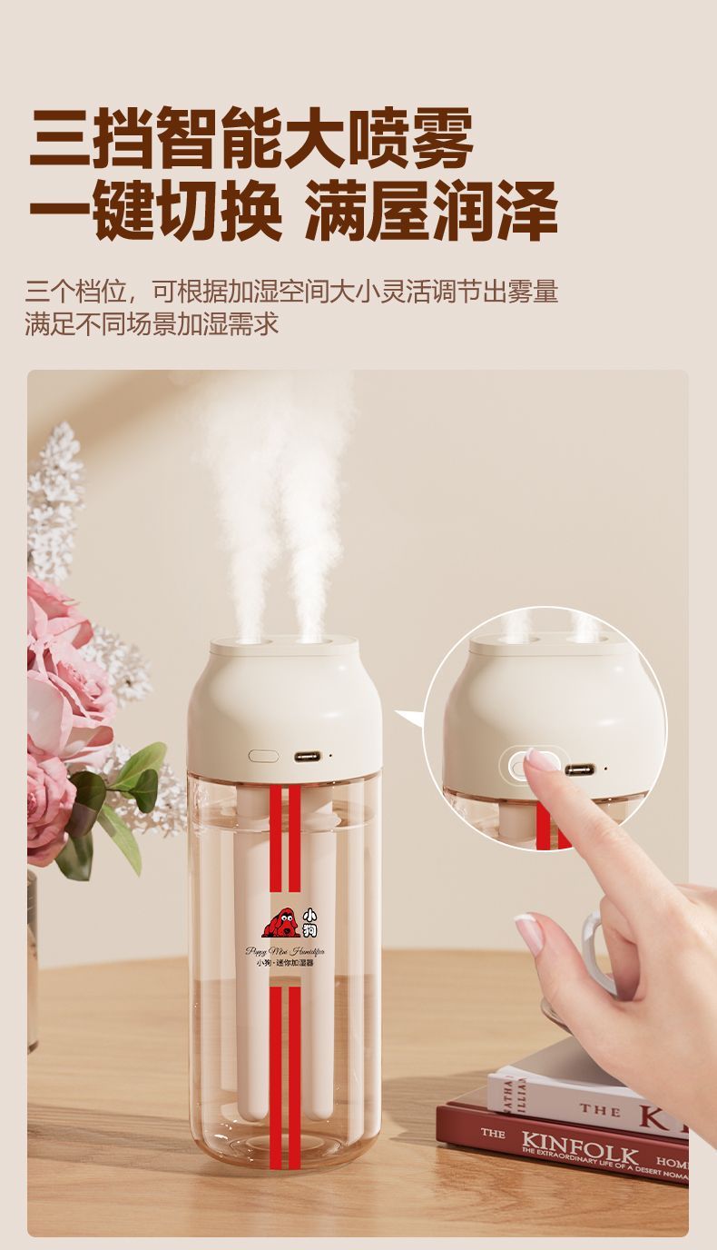 강아지 더블 스프레이 가습기 홈 침실 거실 침묵 아기 임신 대형 안개 무선 분무기 휴대용스토어 가기