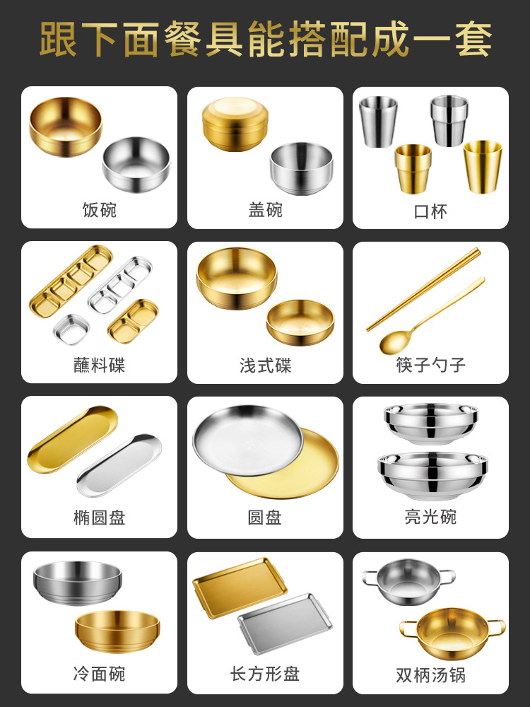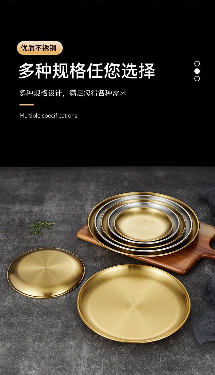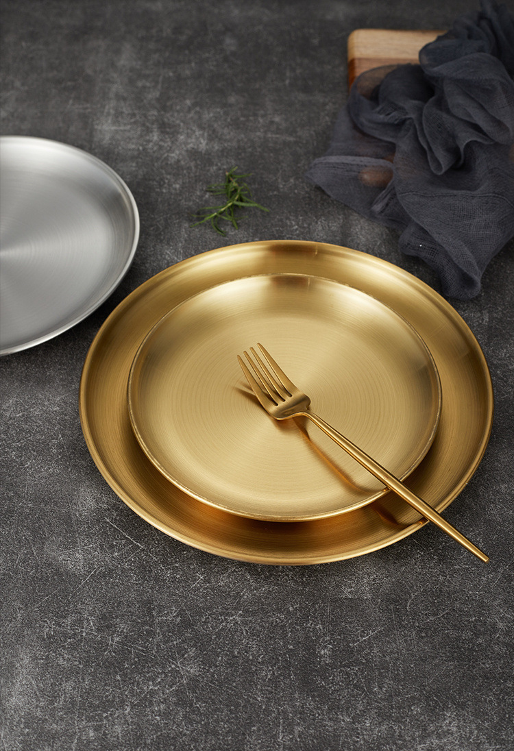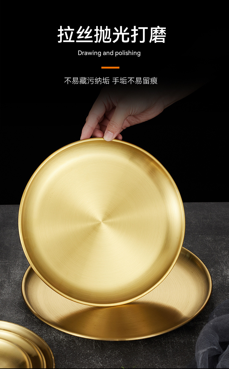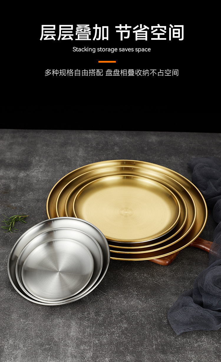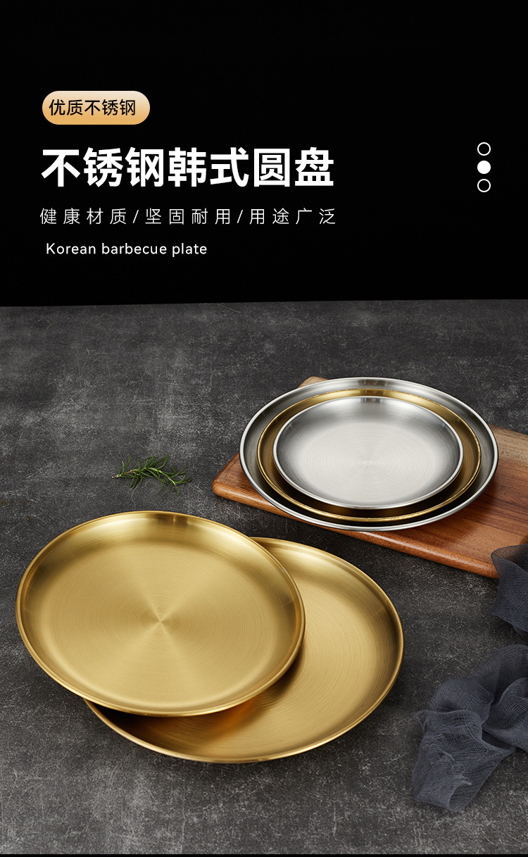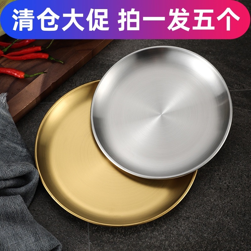 한국식 스테인레스 스틸 디스크 상업용 골드 바베큐 플레이트 트레이 과일 케이크 플레이트 디너 플레이트 뼈 접시 얕은 접시스토어 가기
