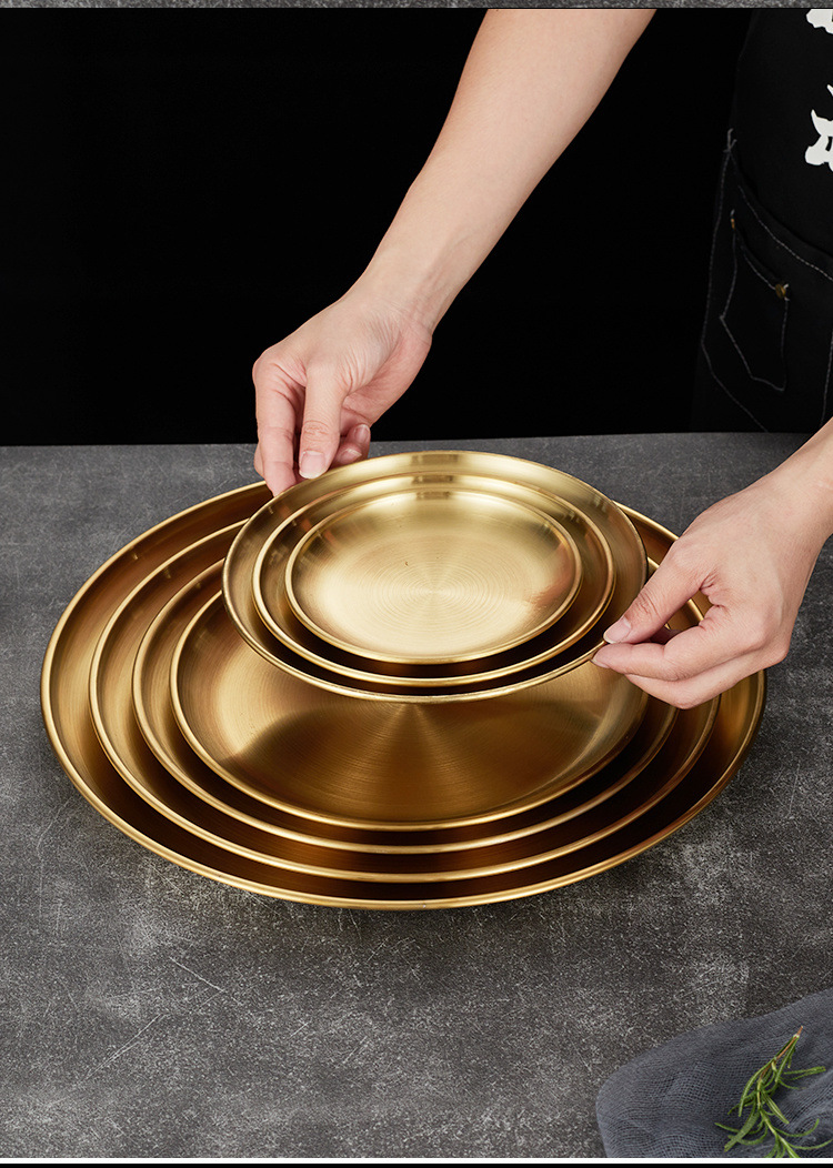 한국식 스테인레스 스틸 디스크 상업용 골드 바베큐 플레이트 트레이 과일 케이크 플레이트 디너 플레이트 뼈 접시 얕은 접시