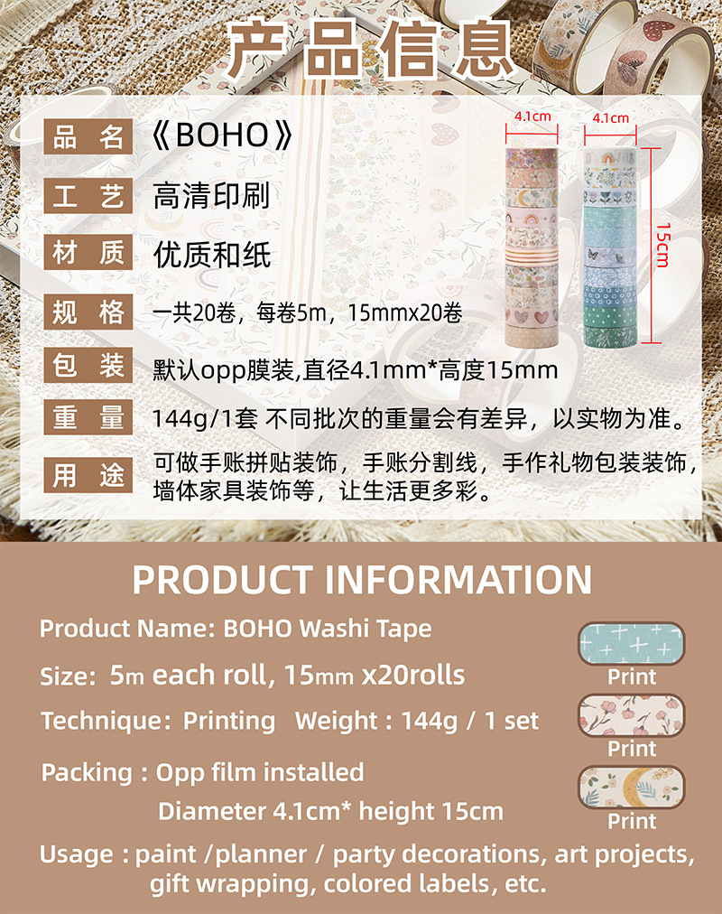 국경 간 도매 boho washi 테이프 boho 스타일 diy 장식 핸드북 테이프 Amazon 소스