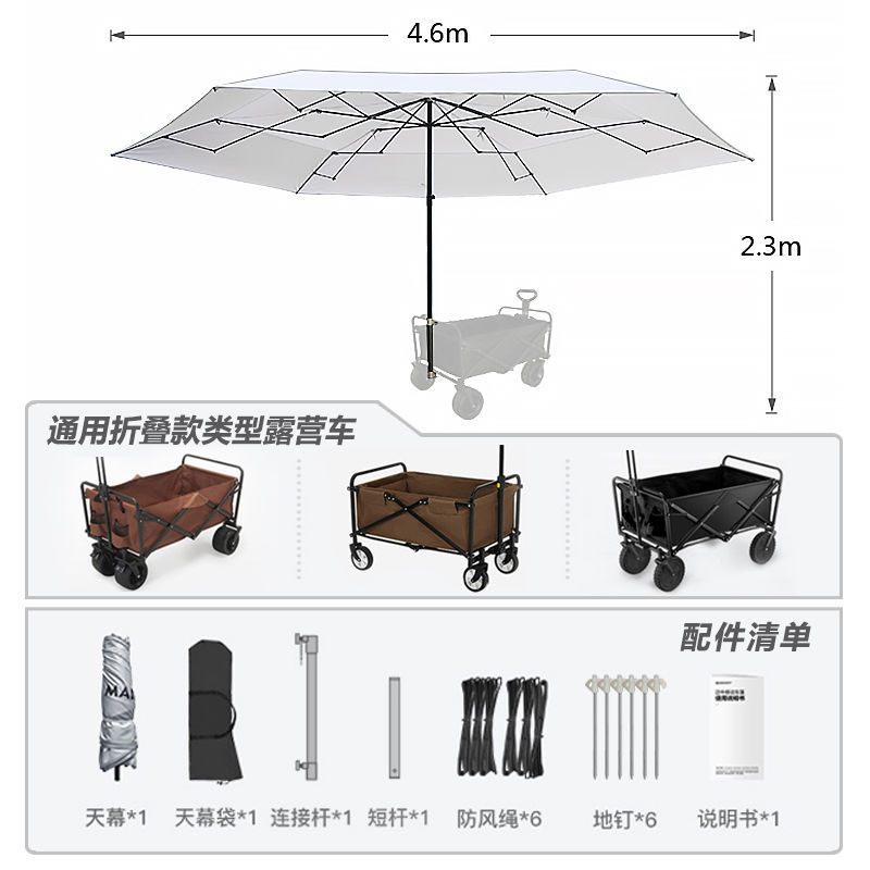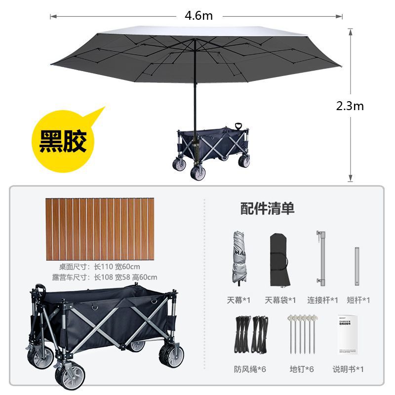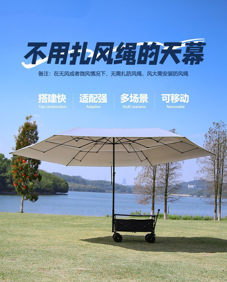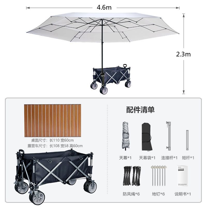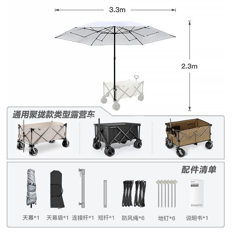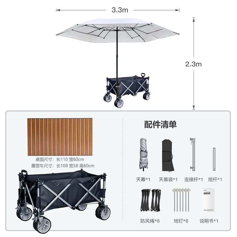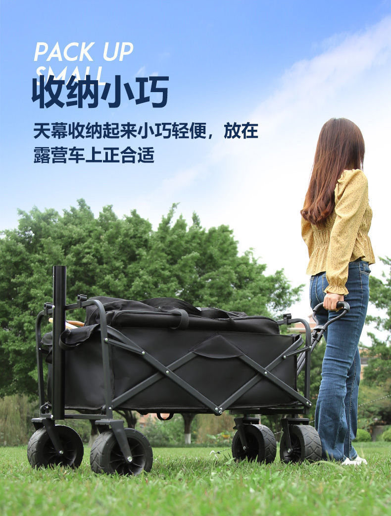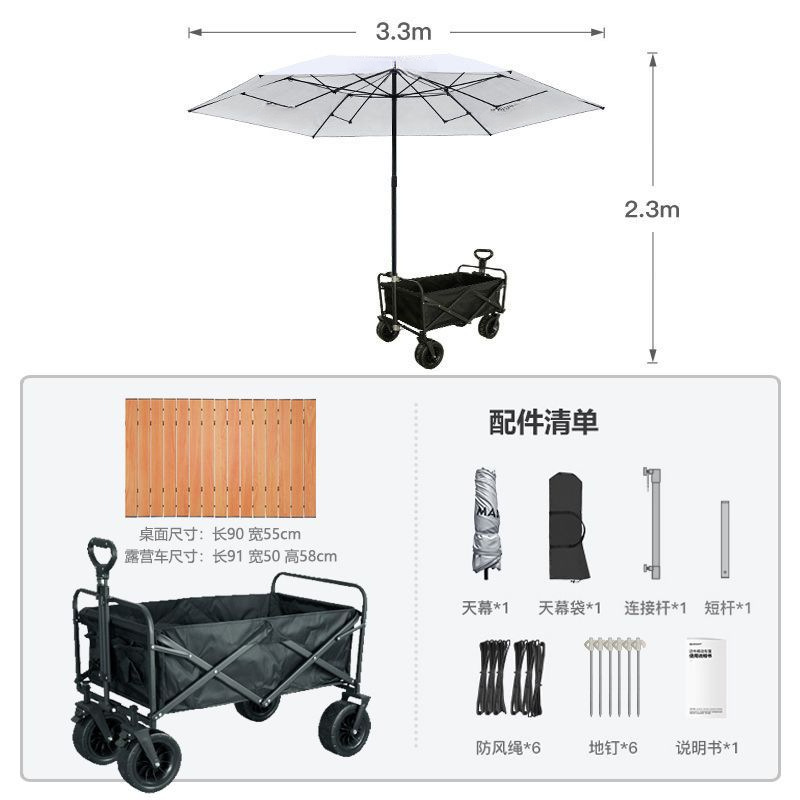비닐 캐노피 캠핑 카트 캠프 트레일러 접이식 모바일 야외 파라솔 핸드 카트 투인원
