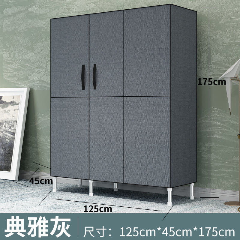 간단한 조립 옷장 침실 더블 패브릭 보관 캐비닛 실용적인 패브릭 옷장 강철 파이프 두꺼운 강화 전체 강철 프레임