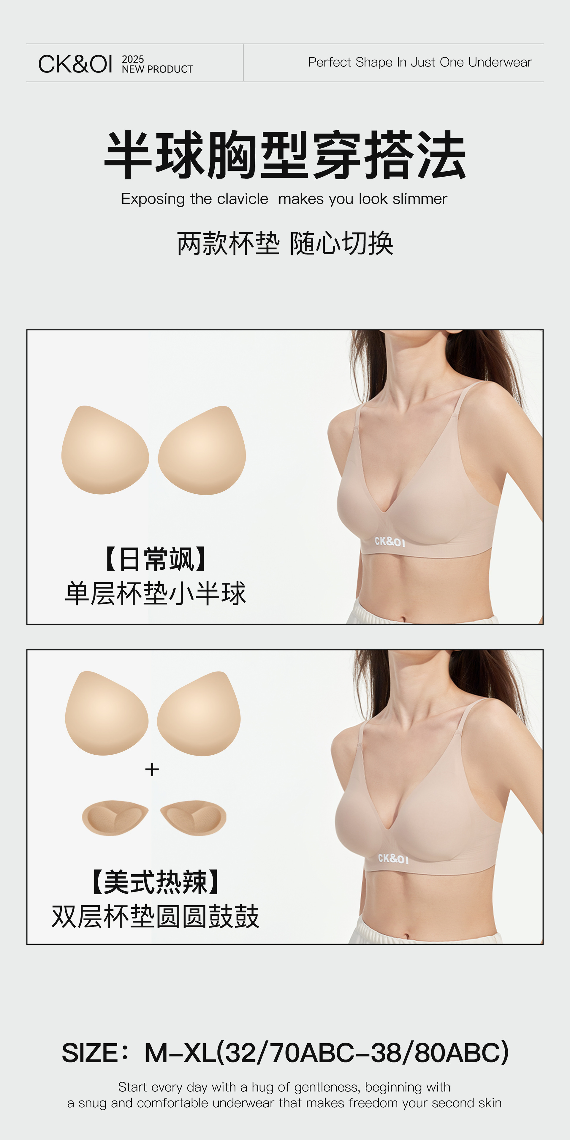220 # 만화풍 가슴 젤리 딥 V 노라인 속옷 여성용 무봉제 편안한 작은 가슴 모아주는 노와이어 브라 여성용 가슴 보정스토어 가기