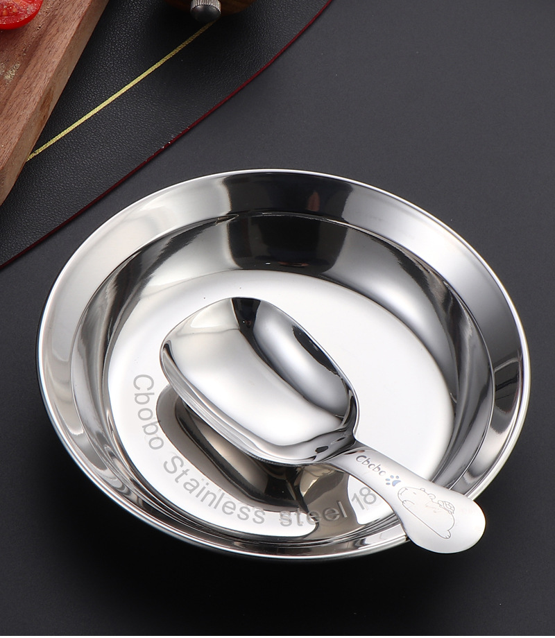 18 - 10 스테인레스 스틸 미니 어린이 식사 스푼 접시 만화 가정용 접시 식품 등급 두꺼운 딥 디스크스토어 가기