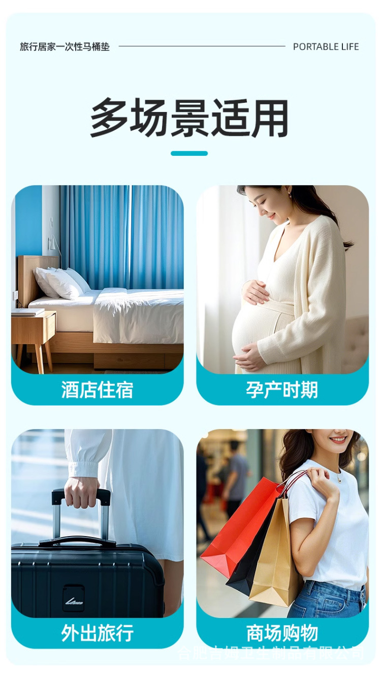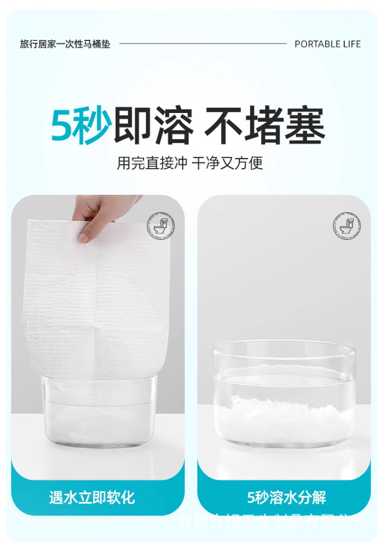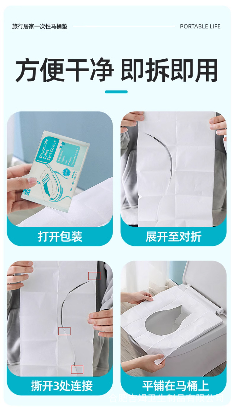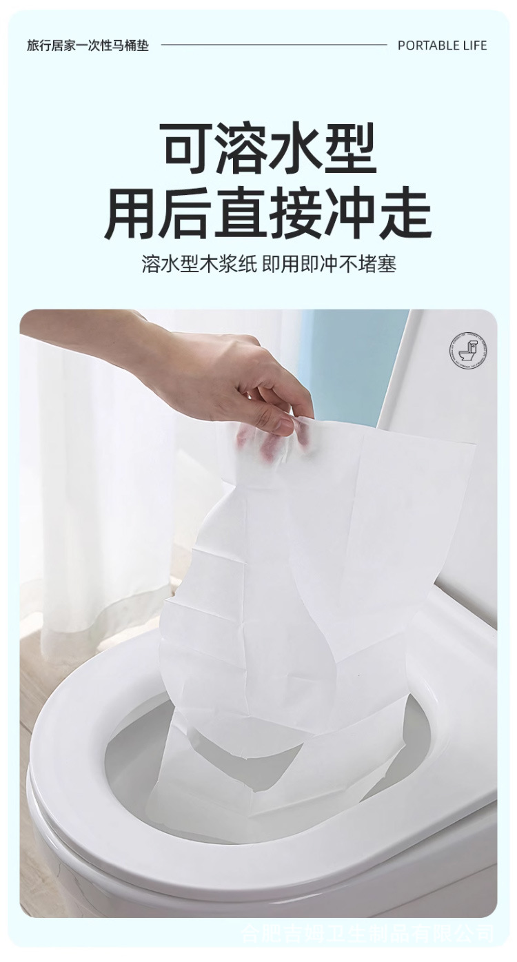 더러운 여행 호텔 특별한 접착제 화장실 커버 여행을위한 용해 가능한 일회용 화장실 쿠션 가득 차있는 쿠션 커버
