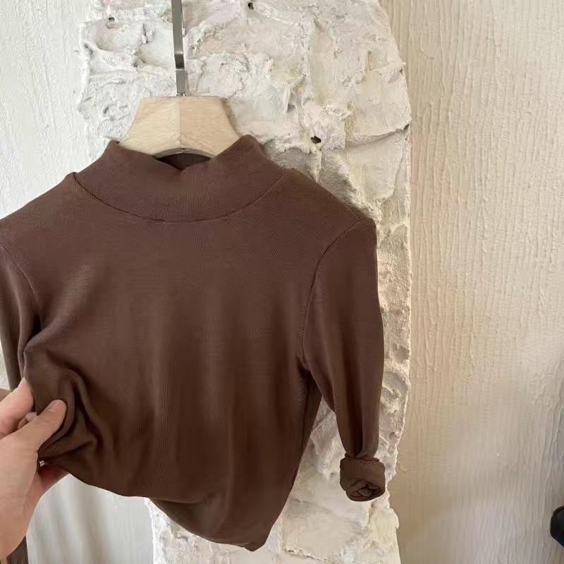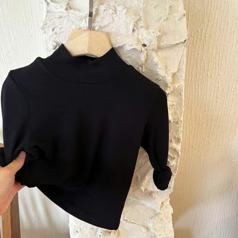 부드럽고 신축성 있는 한국 남아, 여아용 긴팔 하의 셔츠, 베이비 하프 터틀넥 이너탑, 트렌디