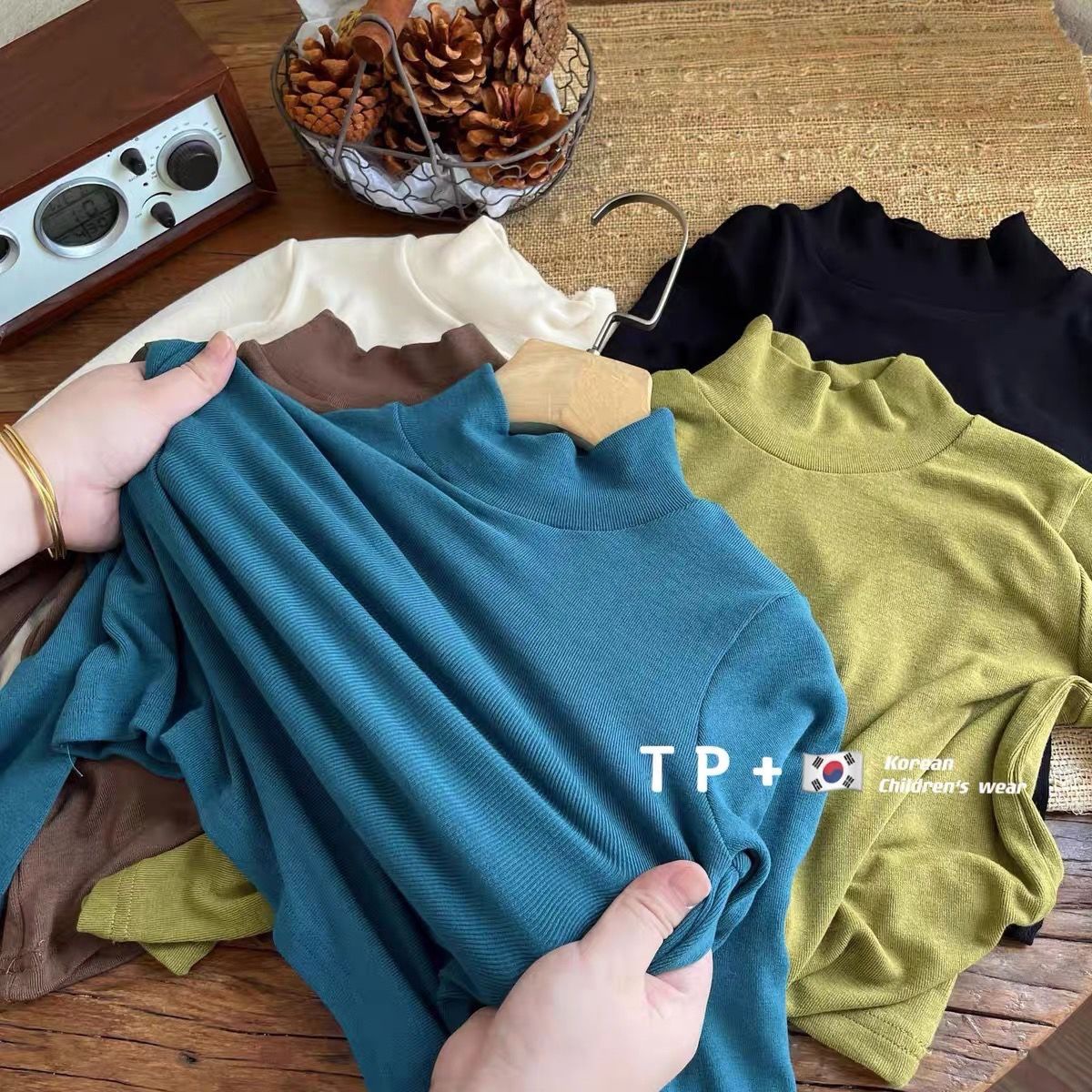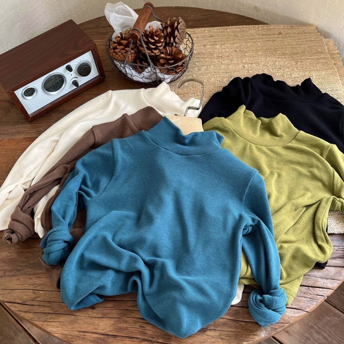 부드럽고 신축성 있는 한국 남아, 여아용 긴팔 하의 셔츠, 베이비 하프 터틀넥 이너탑, 트렌디스토어 가기