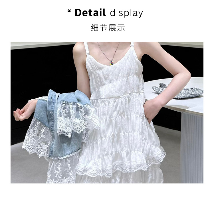 여자 드레스 2025 새로운 여름 어린이 스타일 스커트 여자 데님 조끼 탑 케이크 스커트 여름 드레스스토어 가기