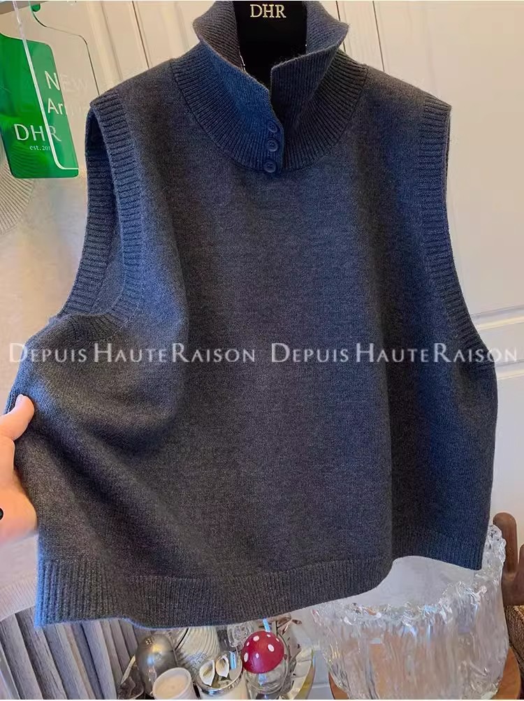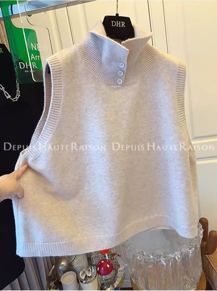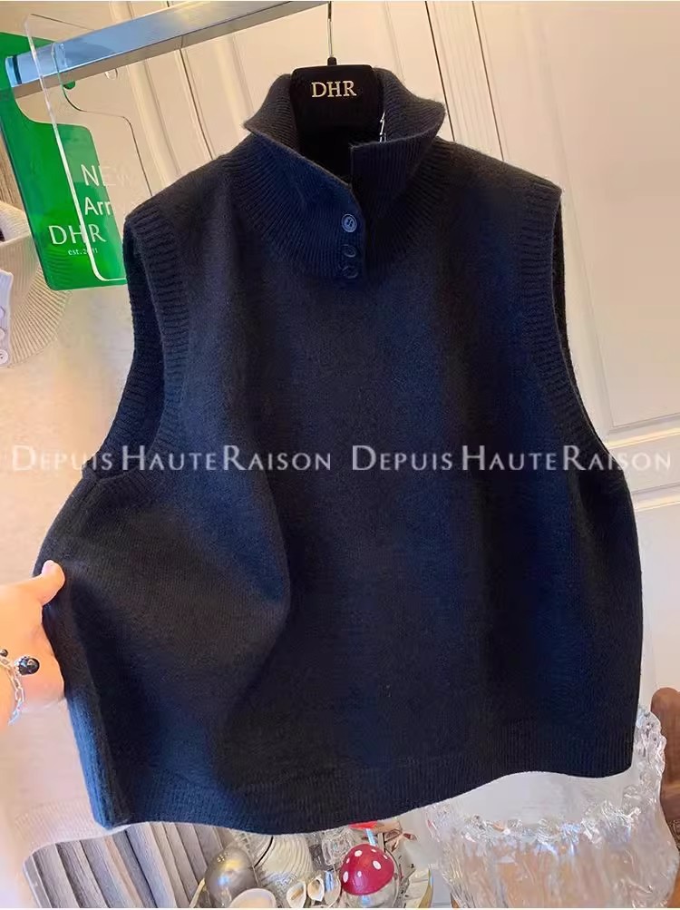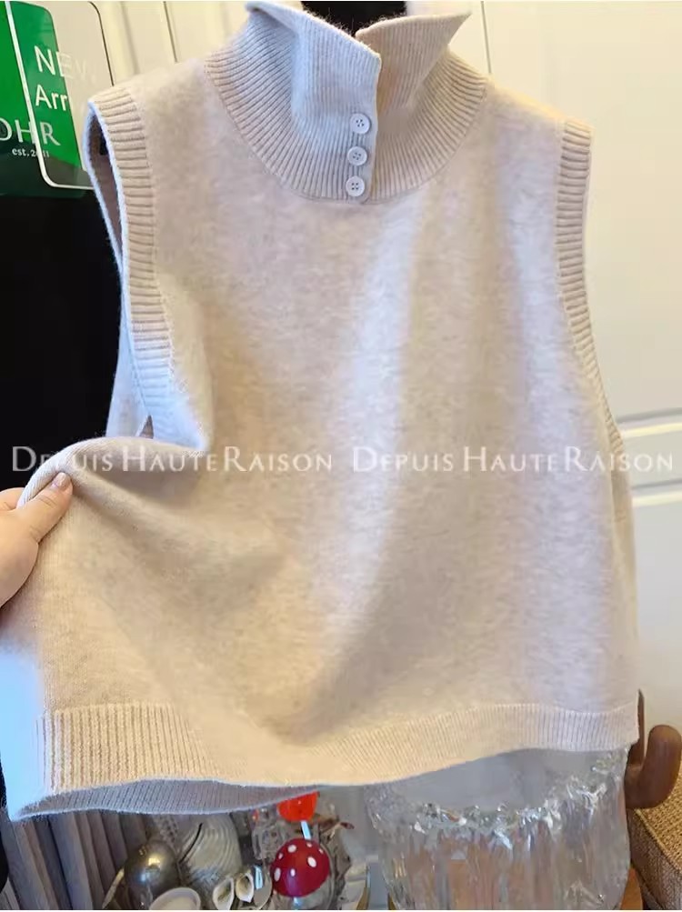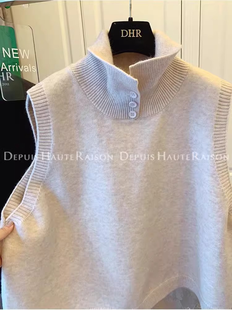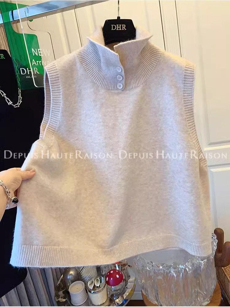 레이지 스타일 캐주얼 하프 터틀넥 스웨터 트렌디한 하이엔드 레트로 민소매 조끼 여성용 루즈 이너 탑스토어 가기