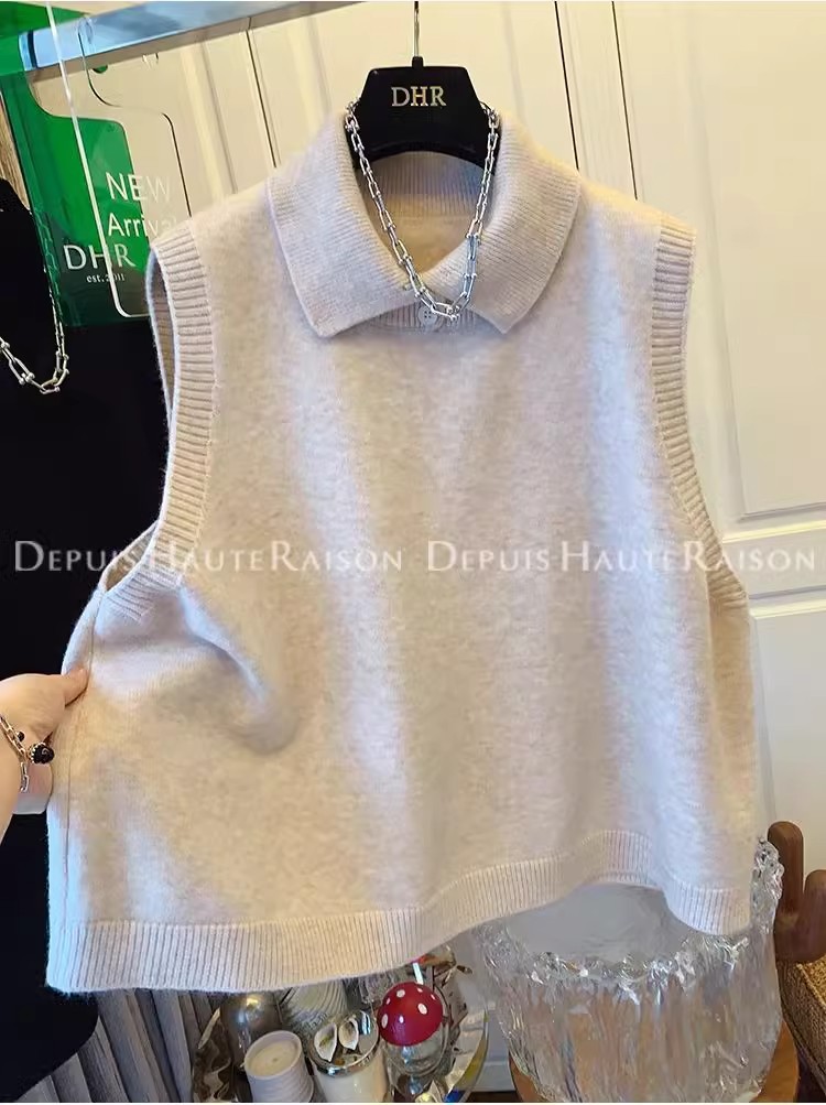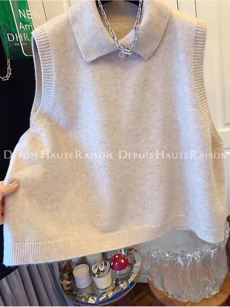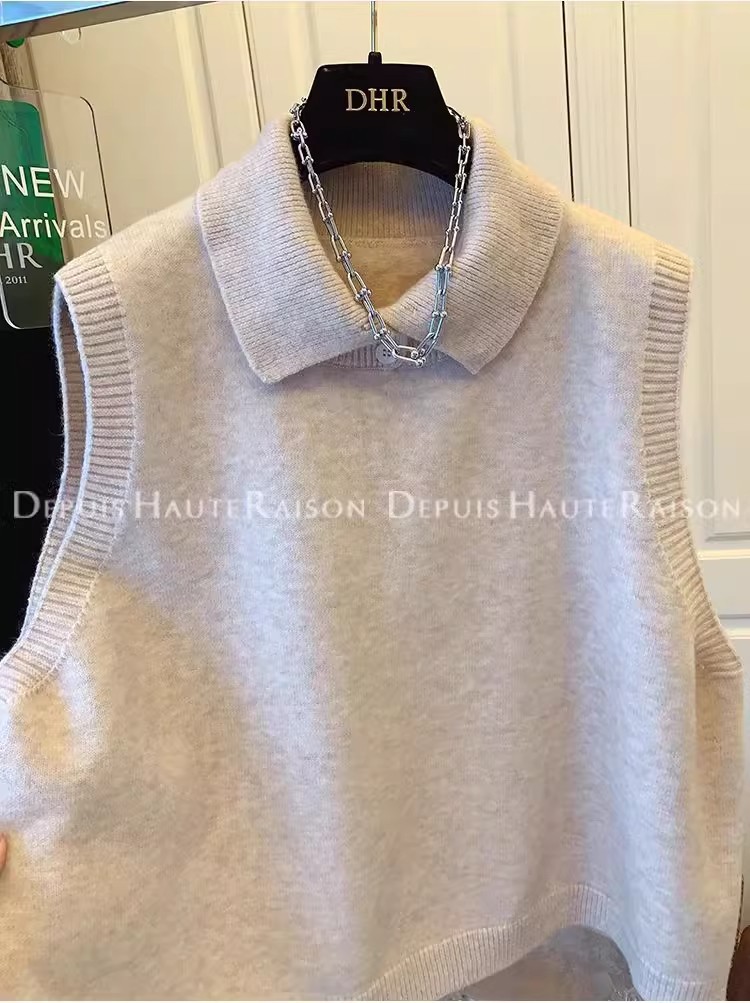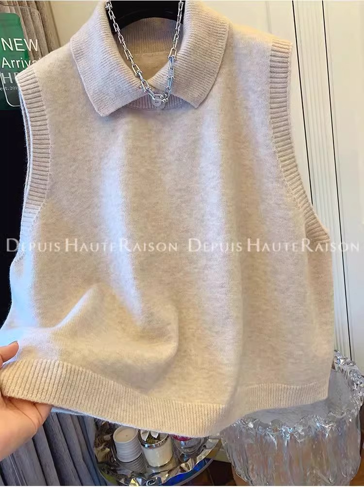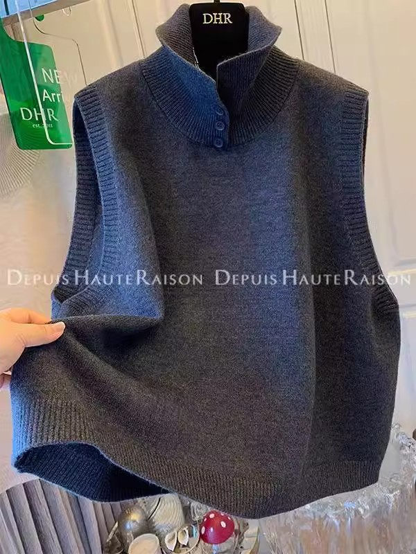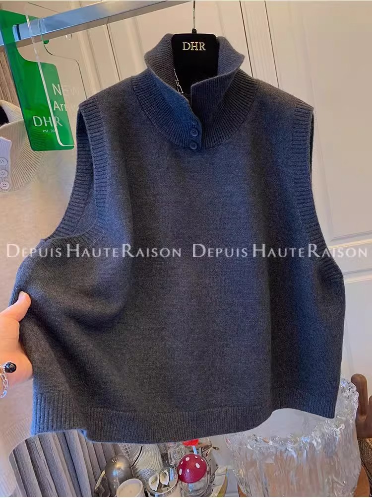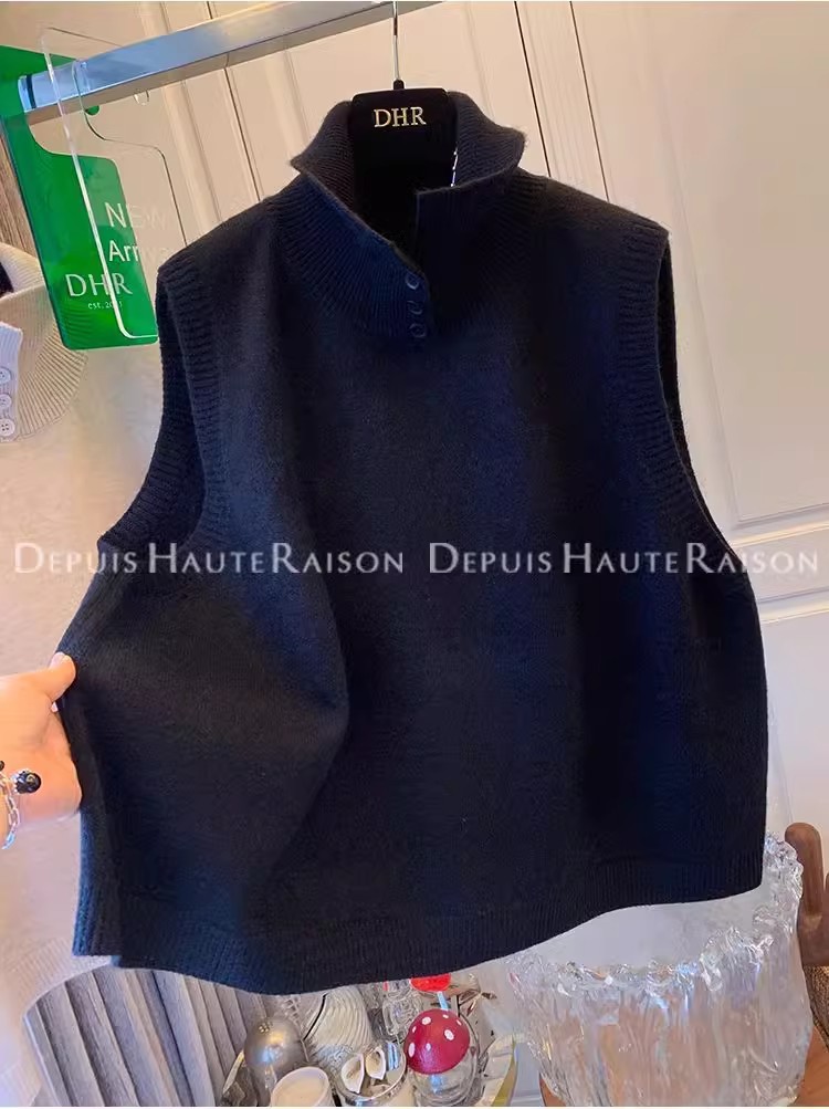 레이지 스타일 캐주얼 하프 터틀넥 스웨터 트렌디한 하이엔드 레트로 민소매 조끼 여성용 루즈 이너 탑스토어 가기