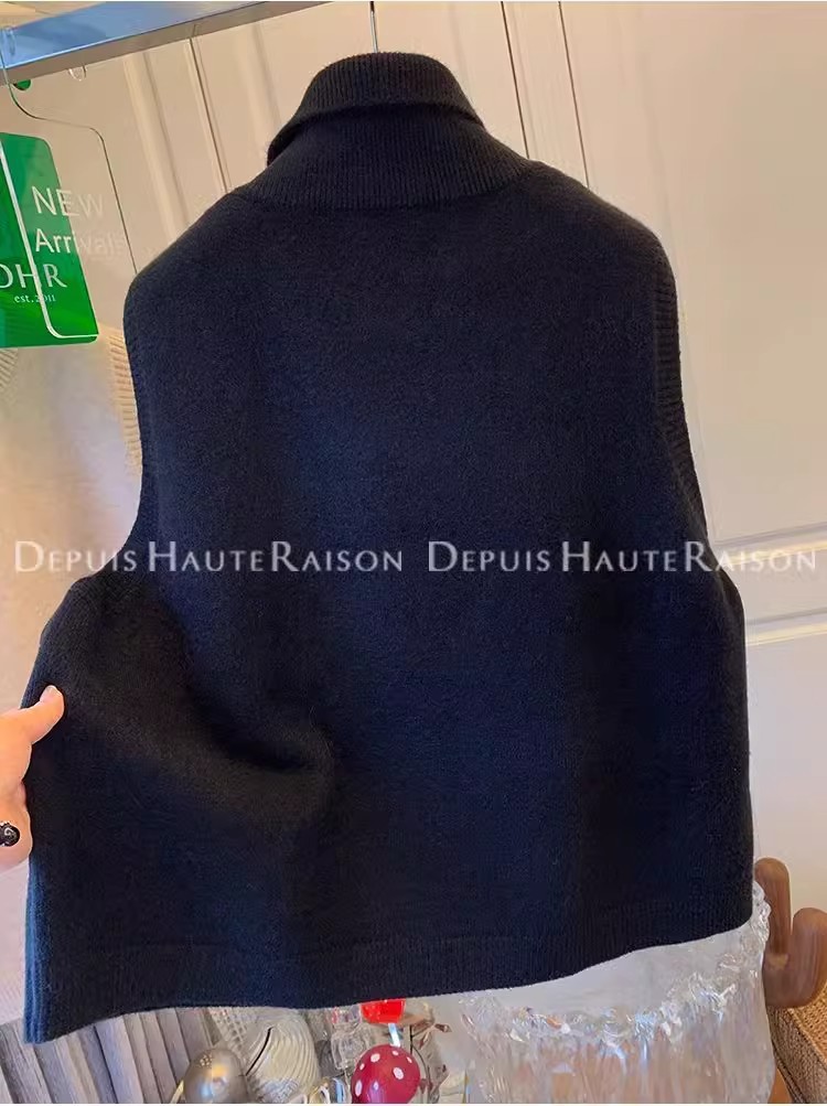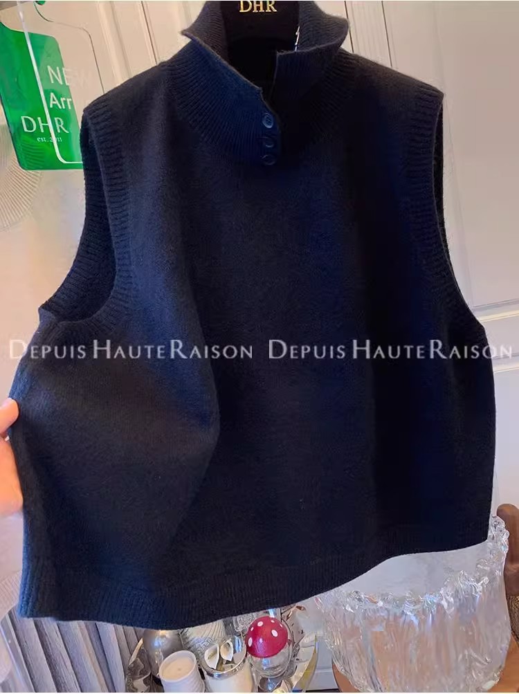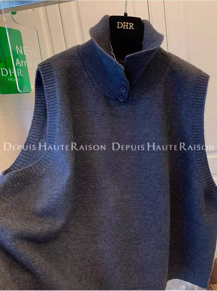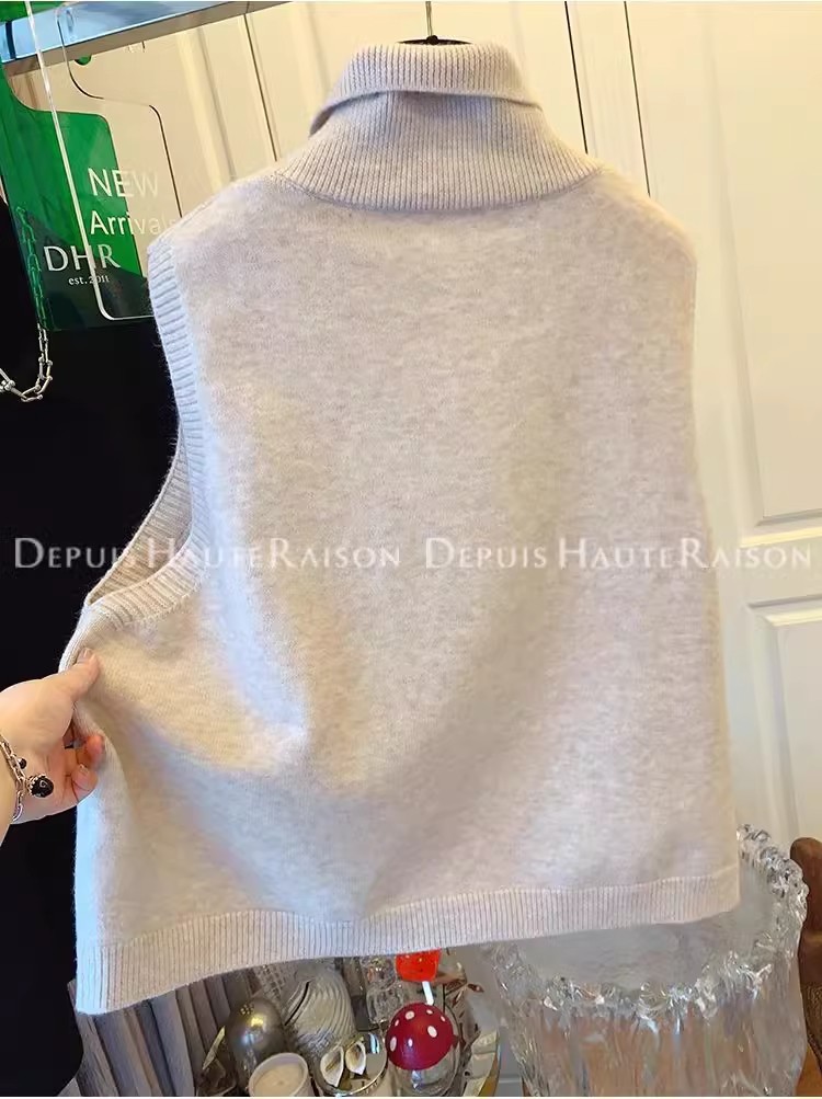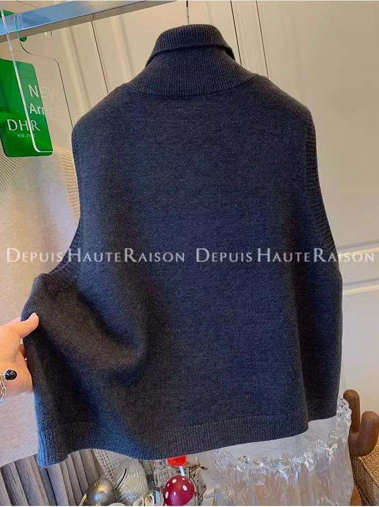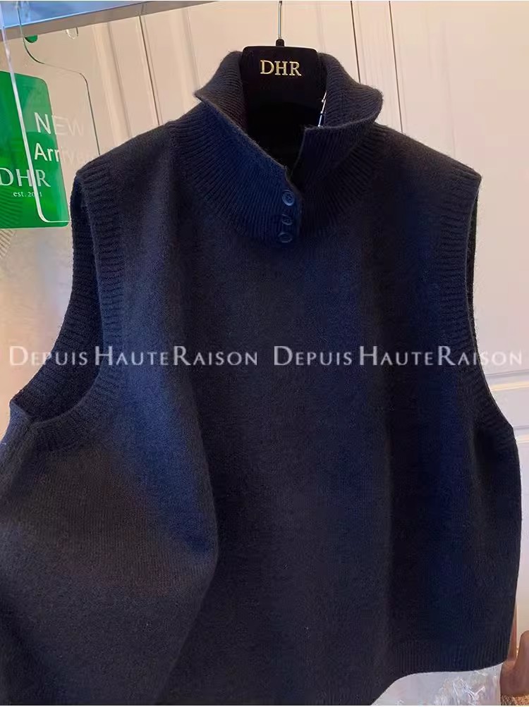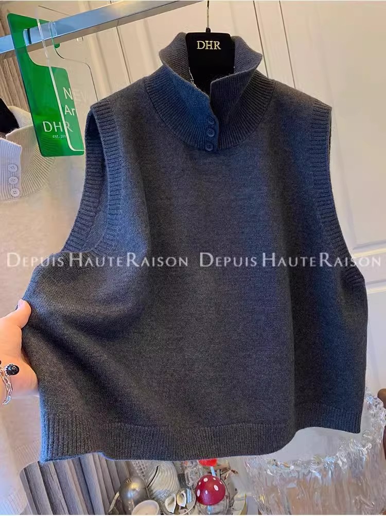 레이지 스타일 캐주얼 하프 터틀넥 스웨터 트렌디한 하이엔드 레트로 민소매 조끼 여성용 루즈 이너 탑