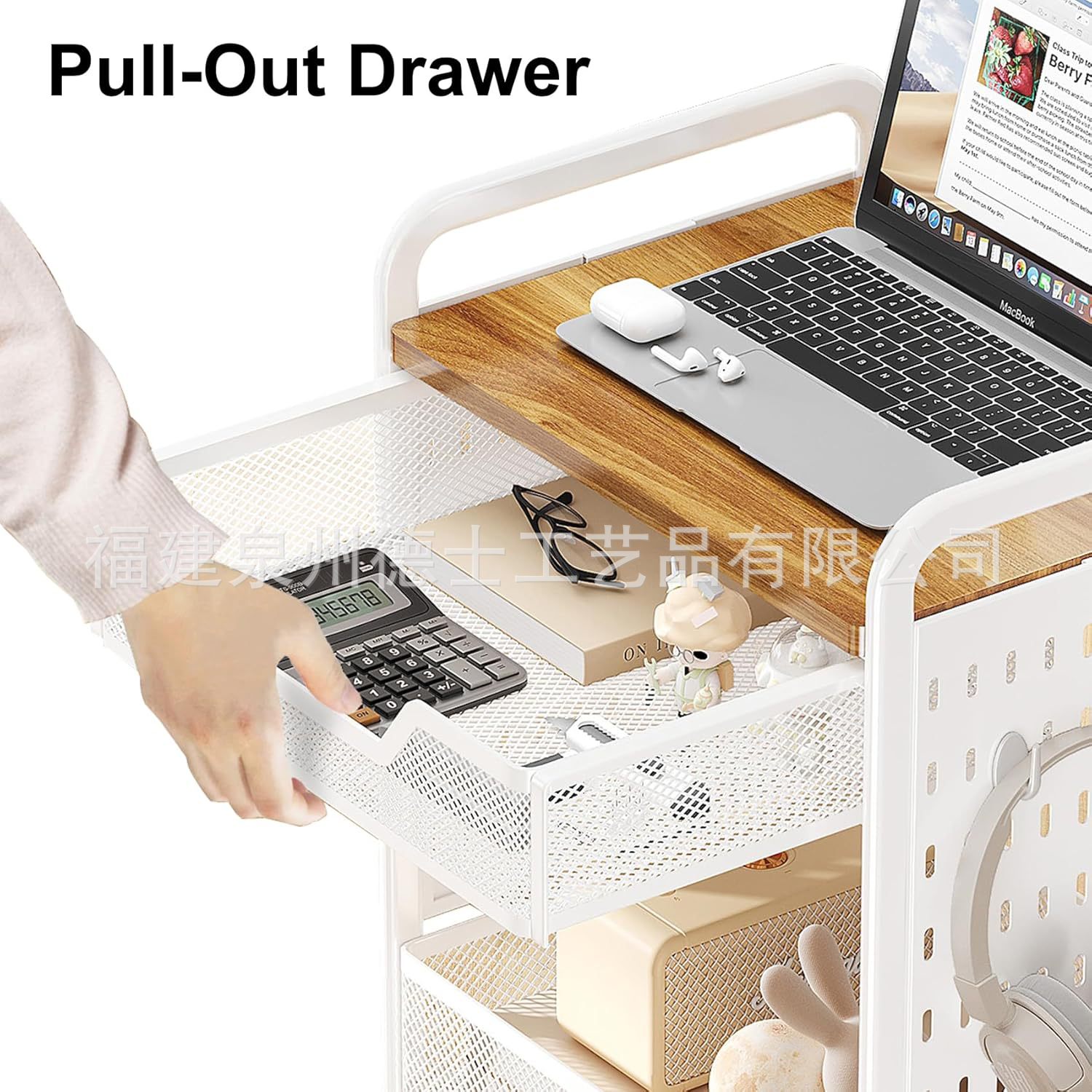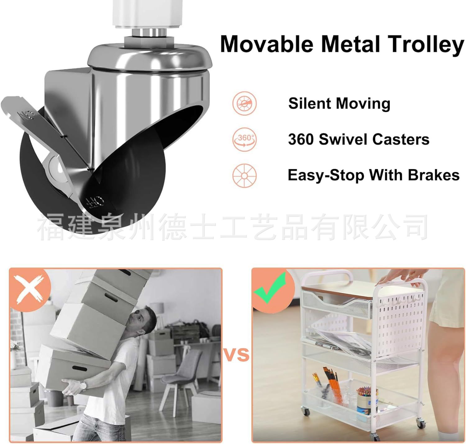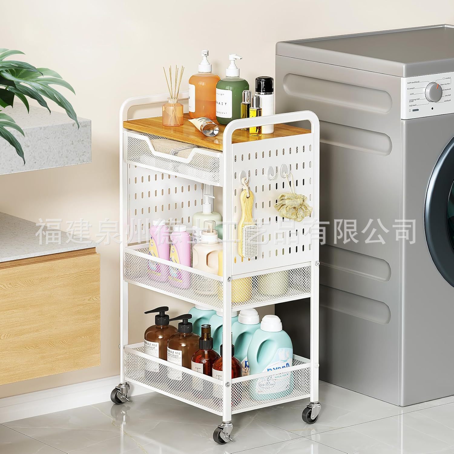 목재 서랍이 있는 바퀴 달린 트롤리가 있는 국경 간 맞춤형 3층 다기능 보관 실내 보관 랙스토어 가기