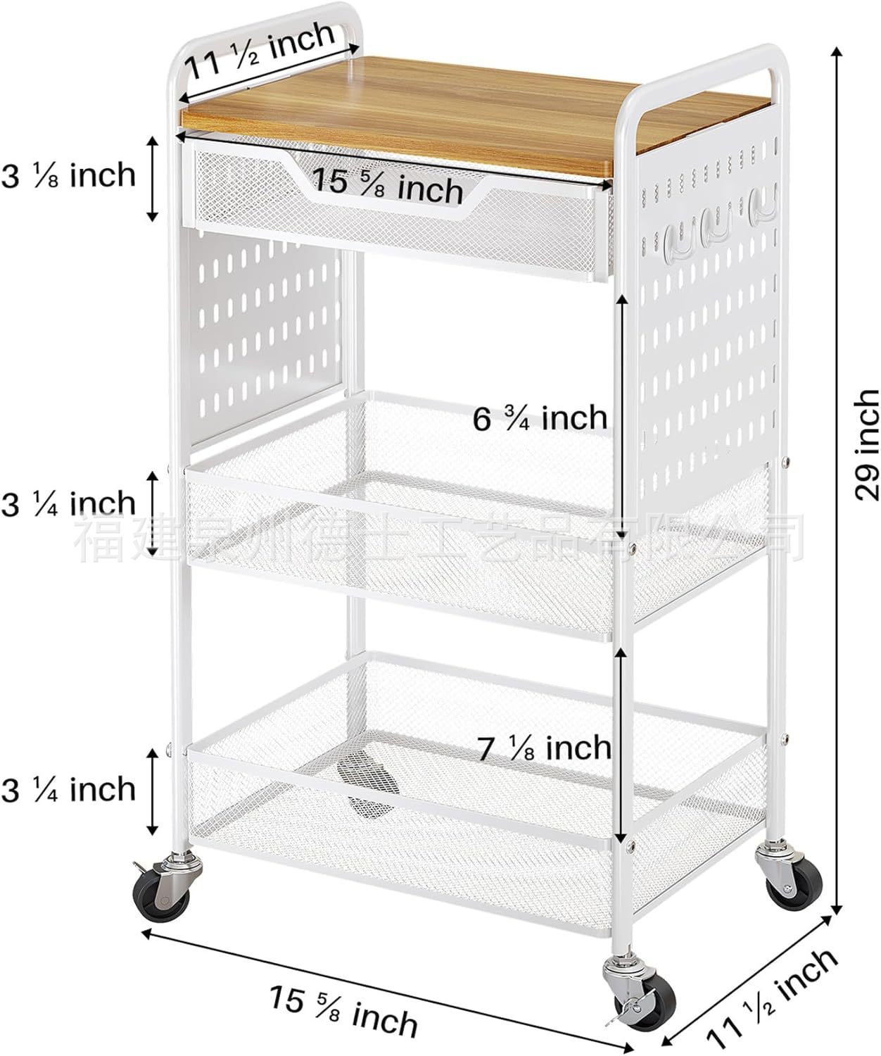 목재 서랍이 있는 바퀴 달린 트롤리가 있는 국경 간 맞춤형 3층 다기능 보관 실내 보관 랙