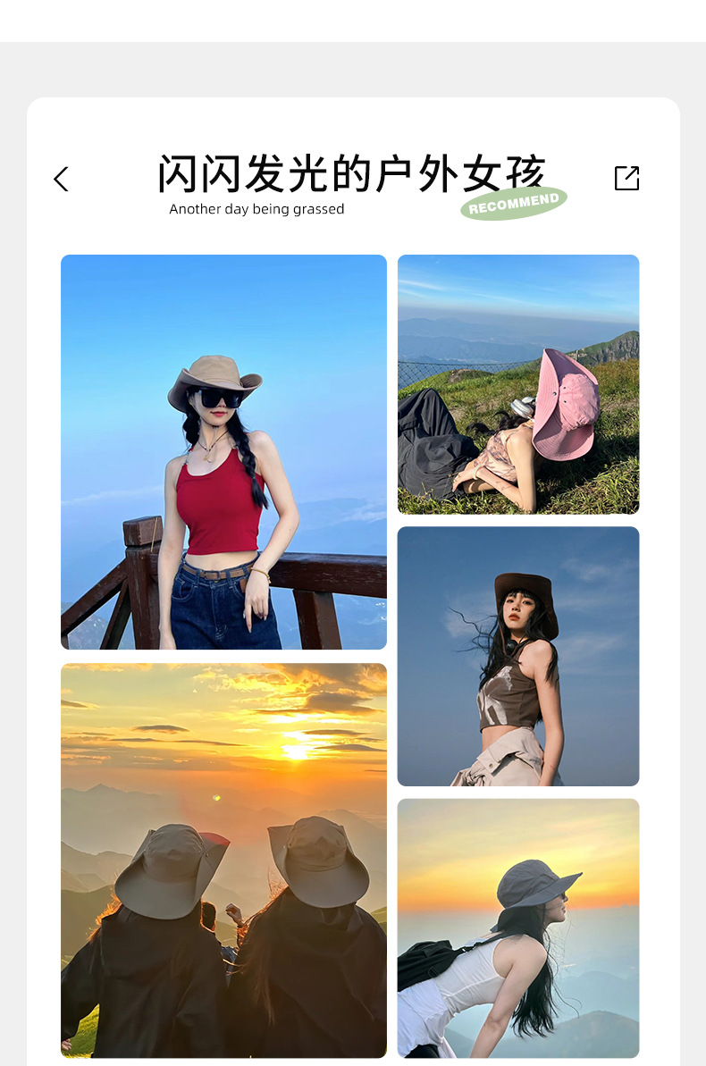 Yang 학생은 서양 카우보이 모자, 어부 모자, 등산용 자외선 차단 모자, 여성용 야외 남성용 태양 보호 등산 모자, 하이킹을 엄선합니다.스토어 가기