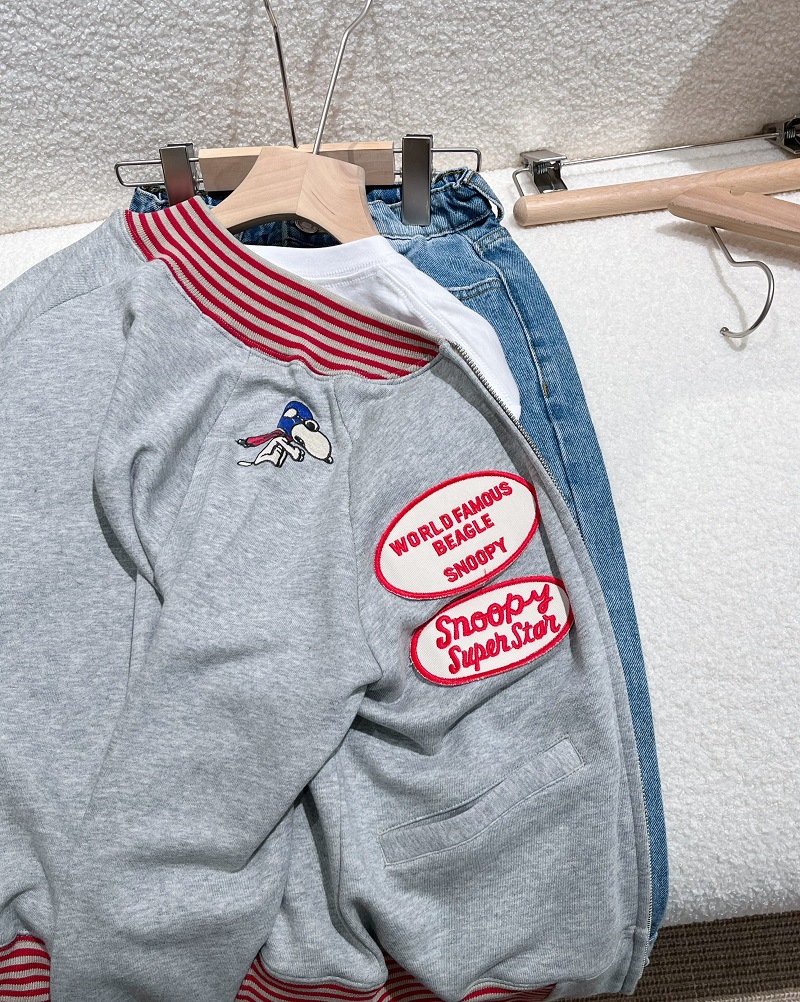 2025 새로운 가을, 겨울 어린이 소년과 소녀 스누우 개 중공업 배지 패치 복고풍 스타일 야구 유니폼 재킷 탑스토어 가기