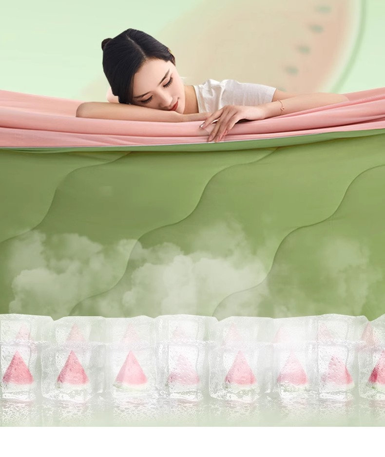 수박 냉동 이불 여름 쿨 퀼트 2025 새로운 여름 쿨 아이스 실크 아이스크림 에어컨 이불 기계 여름에 세탁기스토어 가기
