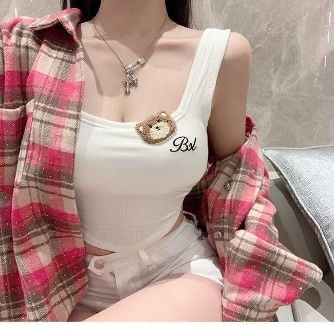 1832 # 스파이스 걸스 섹시 베어 조끼 가슴 패드 슬림 핏 퓨어 올 매치 슬리밍 내부 와이드 어깨 스트랩 베이스 옷