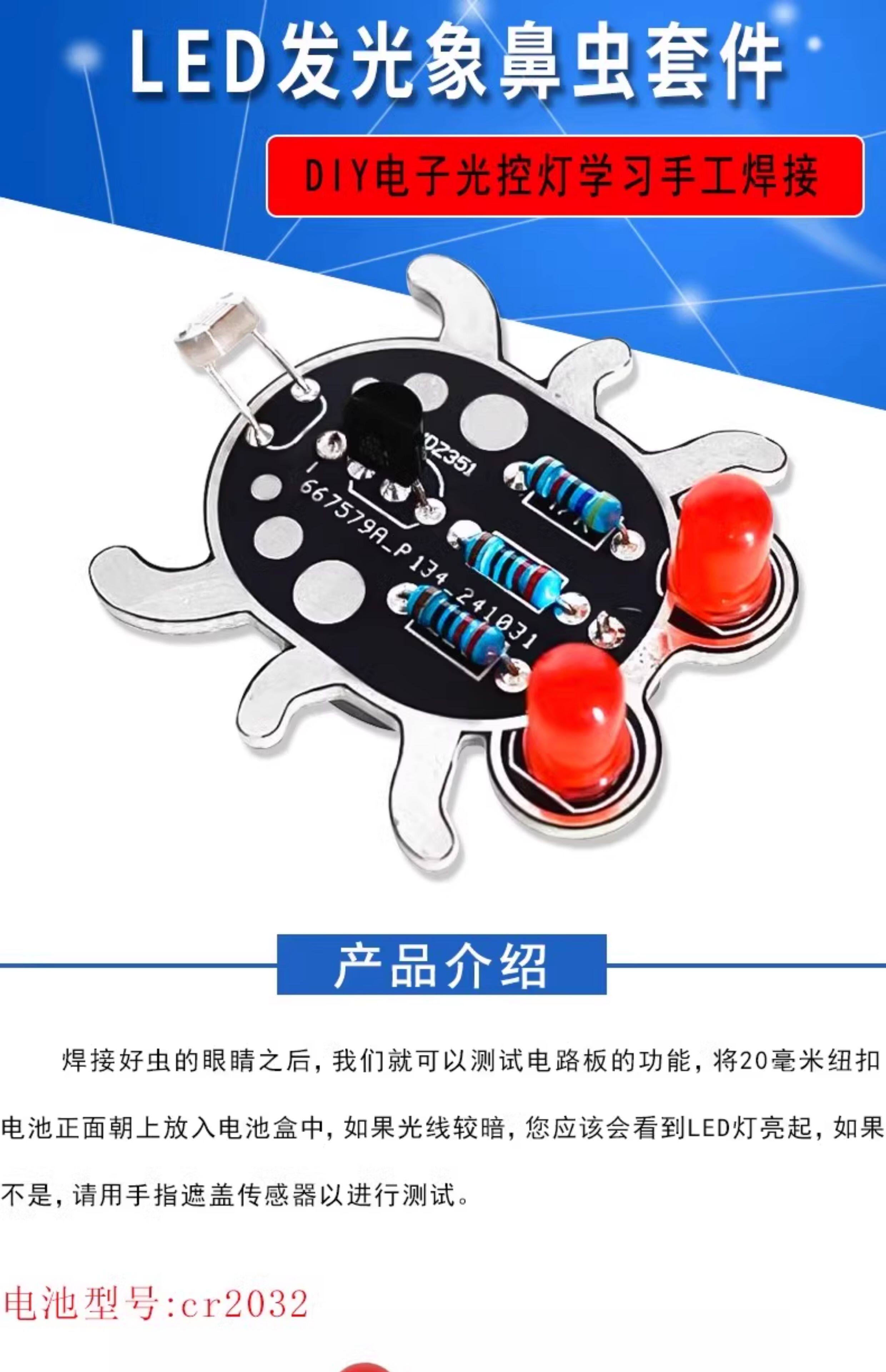 DIY 전자 조명 제어 램프 학습 용접 재미 키트 LED 발광 튜브 모듈 수제 딱정벌레 DIY 부품스토어 가기
