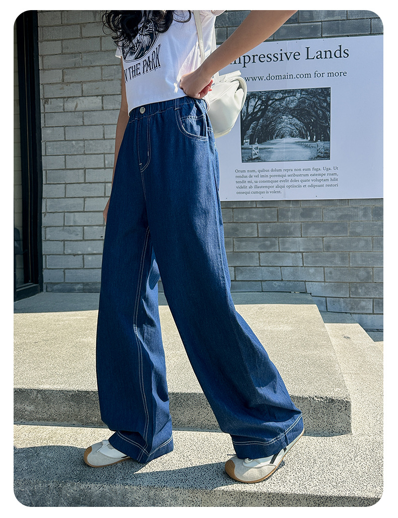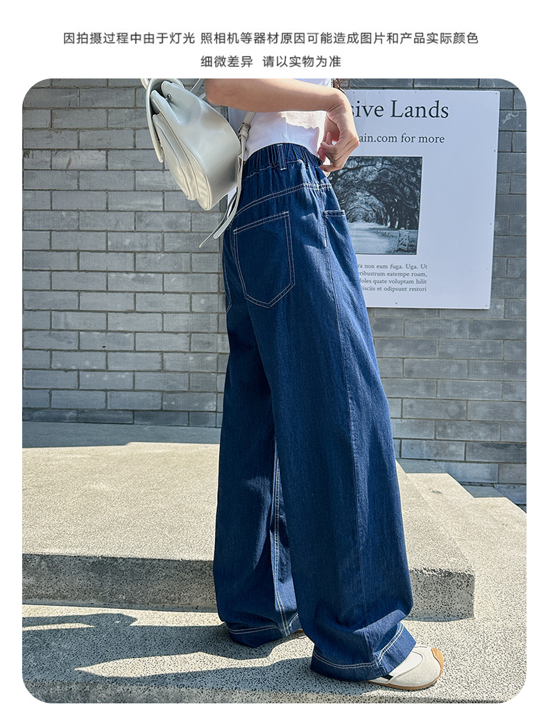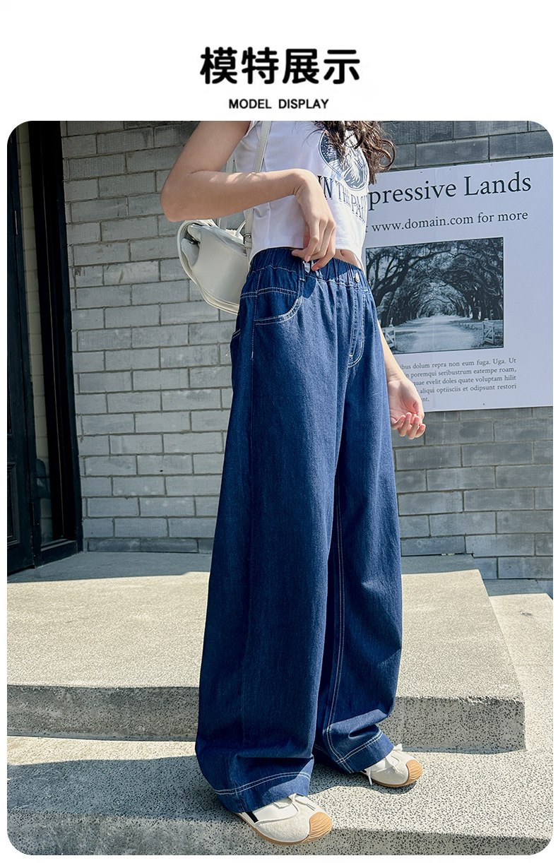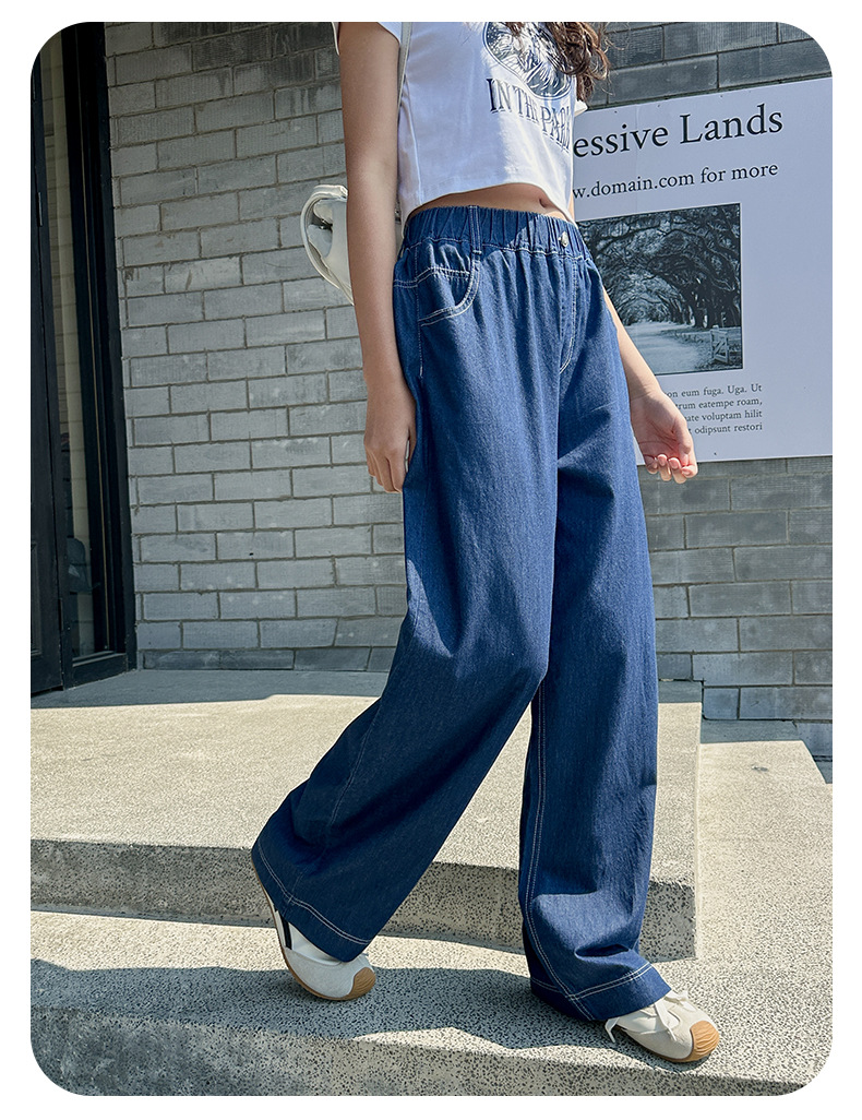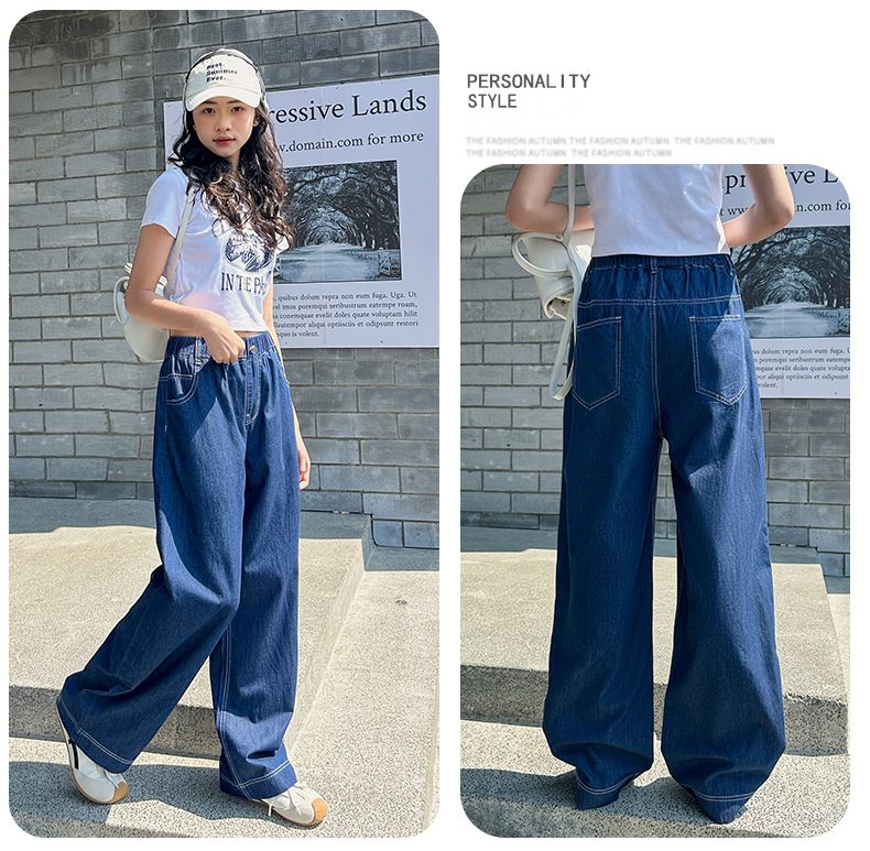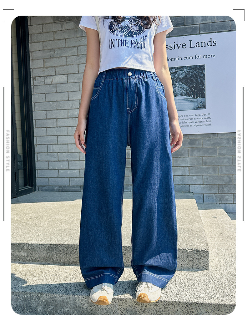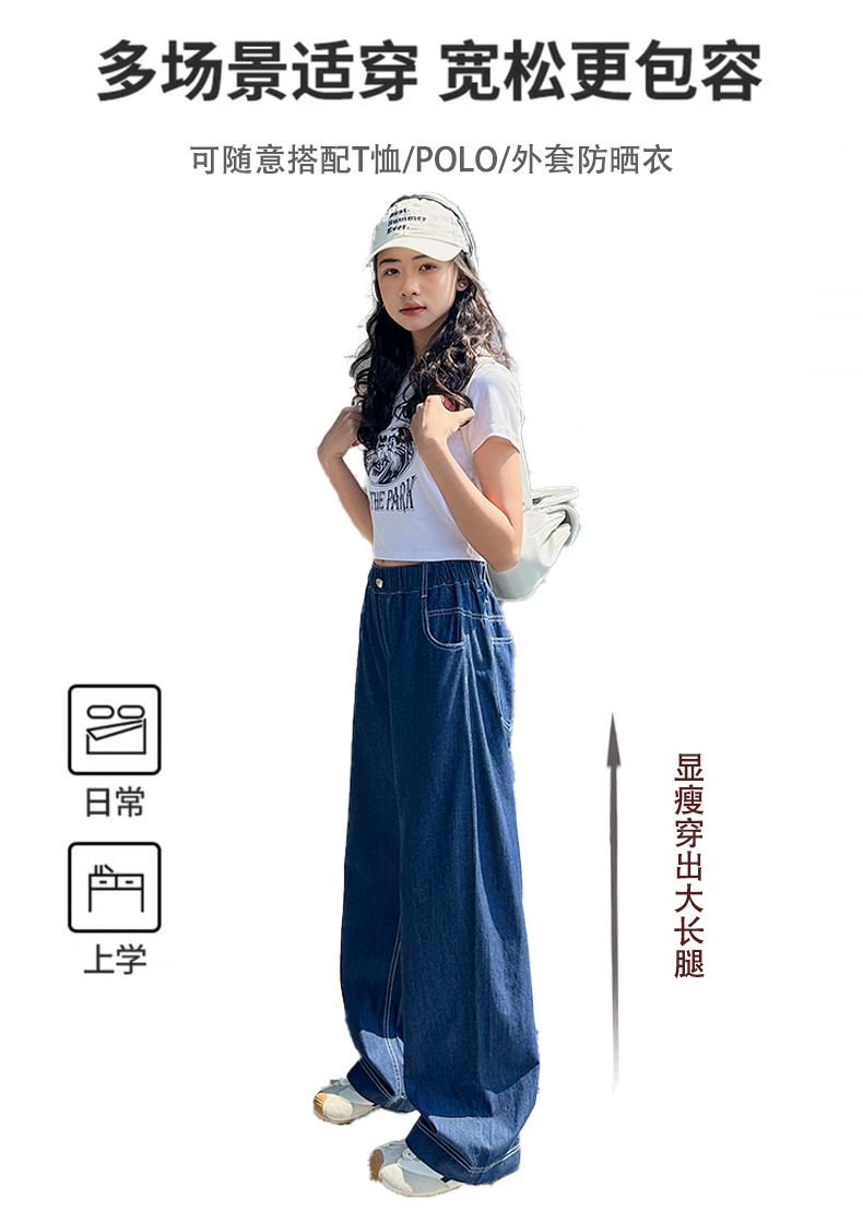 여자 청바지 2025 여름 새 소녀 얇은 직선 다리 바지 느슨한 바지 캐주얼 와이드 다리 안티 모기 바지스토어 가기