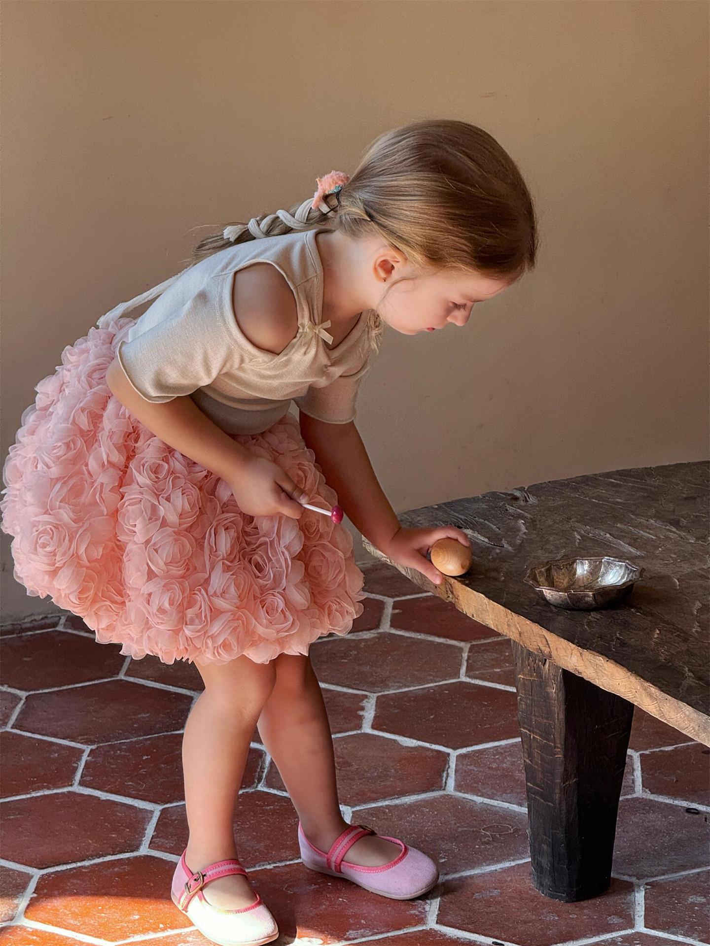 Jianzi Dandan 한국 아동복 2025 여름 새 여자 스커트 달콤한 입체 꽃 거즈 스커트 짧은 스커트 공주 스커트