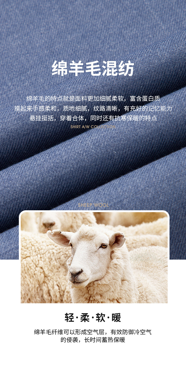새로운 복합 양모 패션 비즈니스 캐주얼 셔츠 남성용 따뜻한 기모 두꺼운 옷깃 긴 소매 남성용 셔츠
