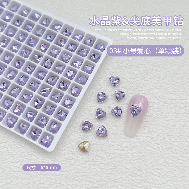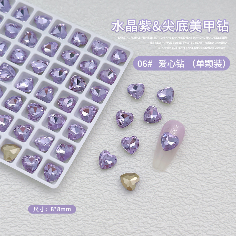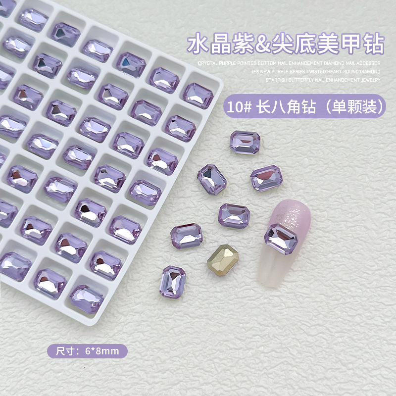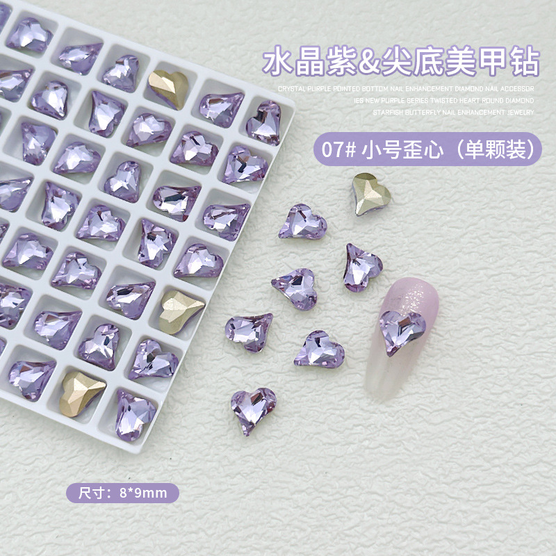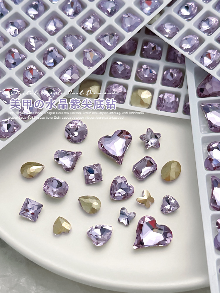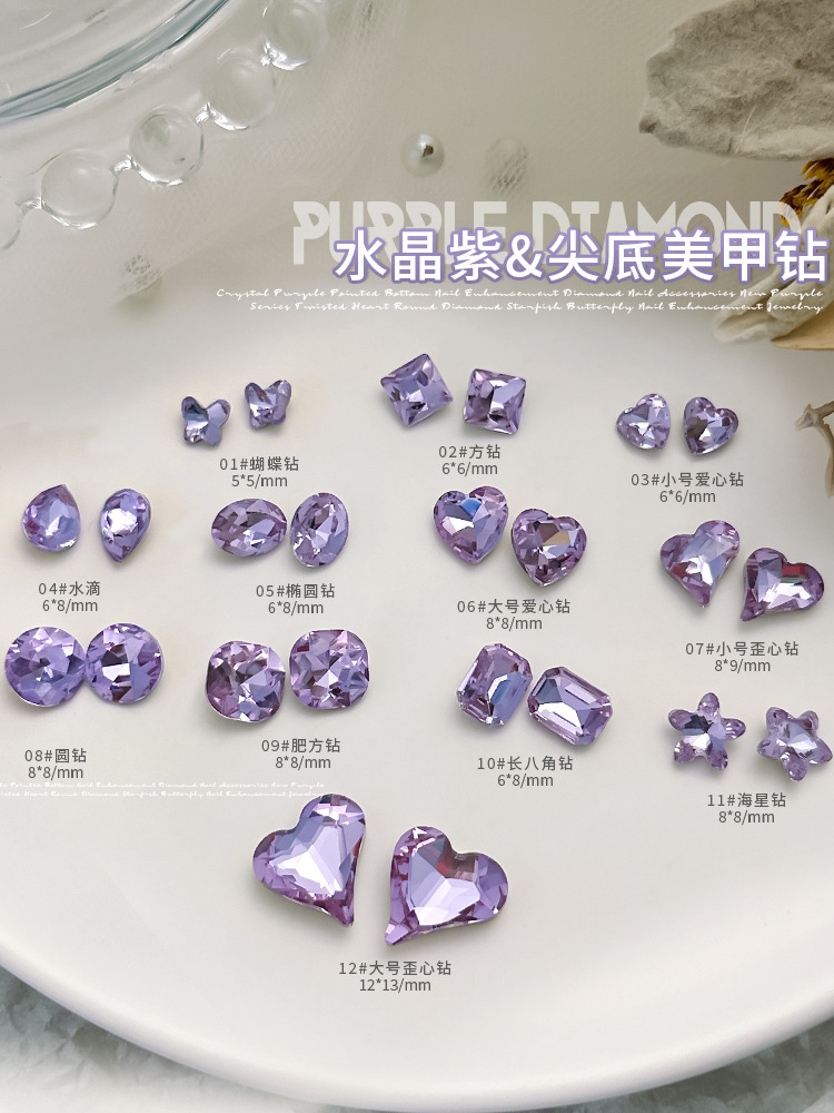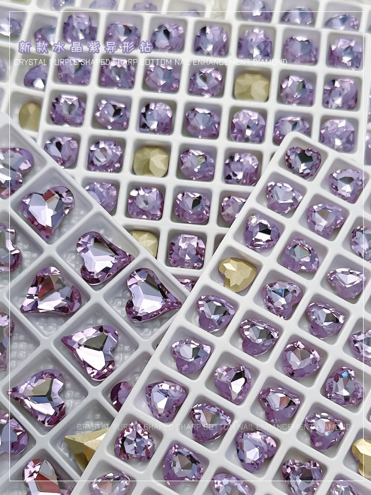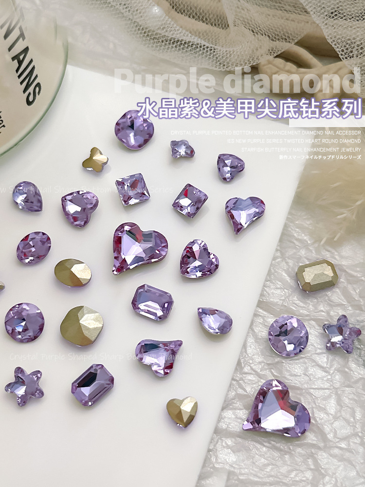 2025 새로운 보라색 네일 아트 다이아몬드 쥬얼리 슈퍼 플래시 틸트 하트 나비 불가사리 뚱뚱한 사각형 다이아몬드 타원형 뾰족한 특수 모양의 다이아몬드스토어 가기