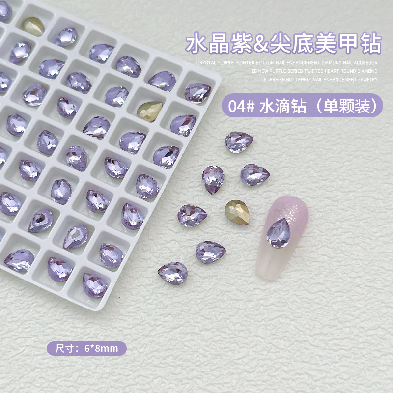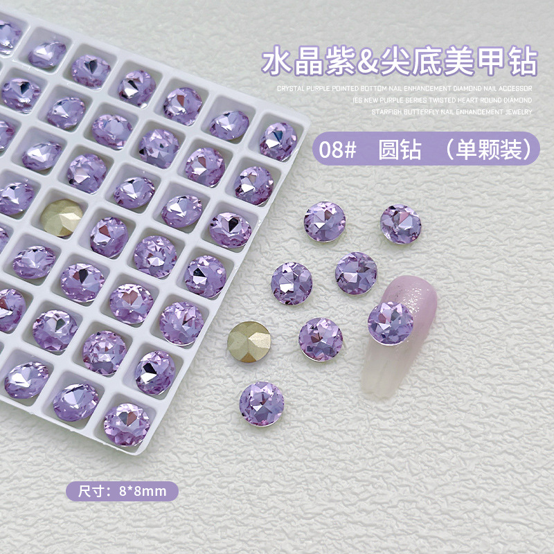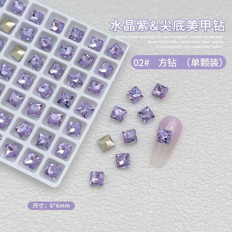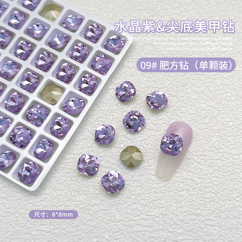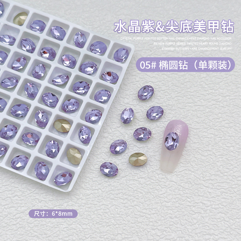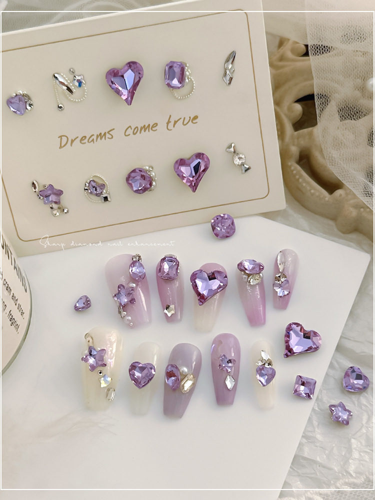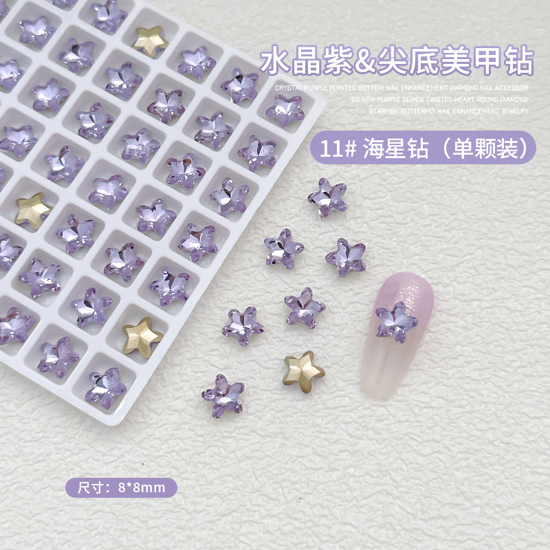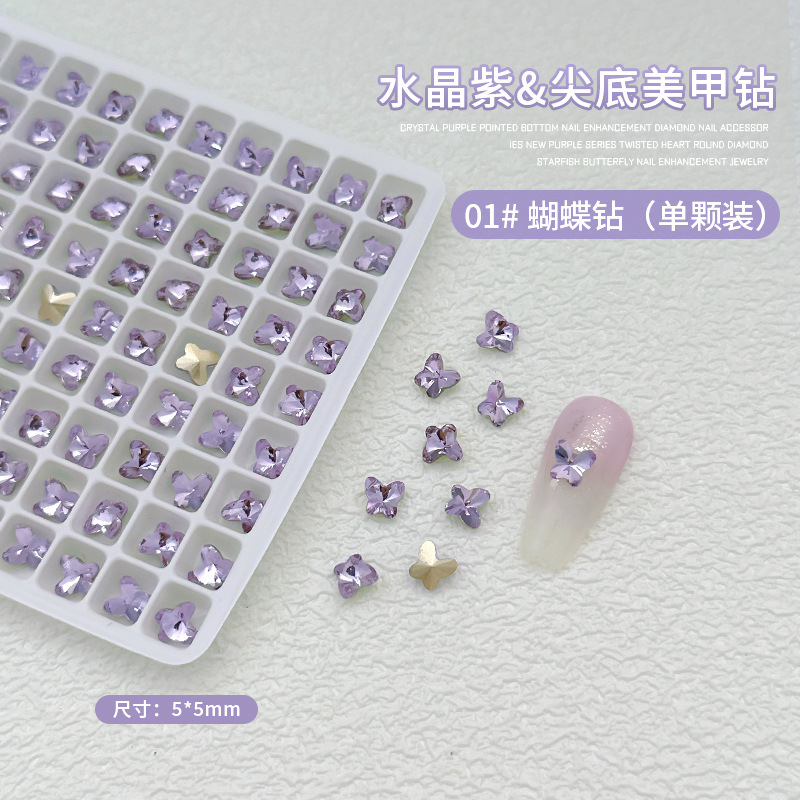 2025 새로운 보라색 네일 아트 다이아몬드 쥬얼리 슈퍼 플래시 틸트 하트 나비 불가사리 뚱뚱한 사각형 다이아몬드 타원형 뾰족한 특수 모양의 다이아몬드스토어 가기