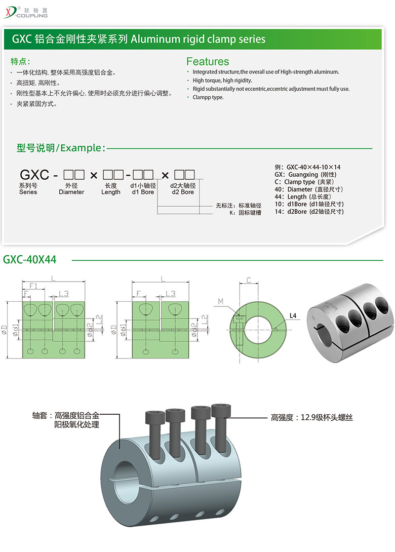 Xingda GXC 알루미늄 합금 엄밀한 커플링 클램핑 조각 기계 믹서 볼 스크류 통합 커플링 M &